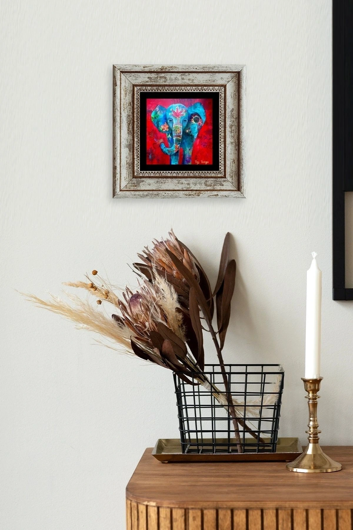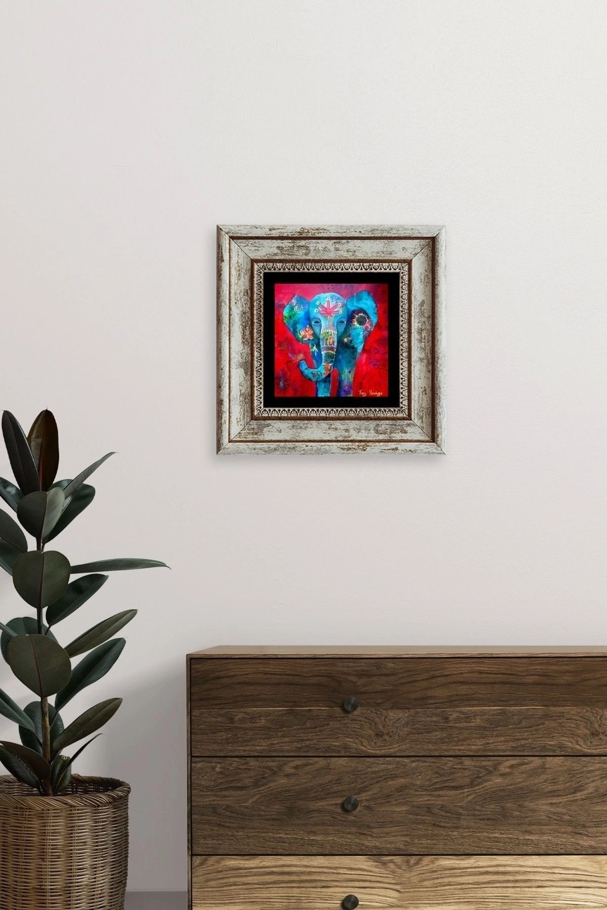 Fil Çerçeveli Taş Tablo 20 cm