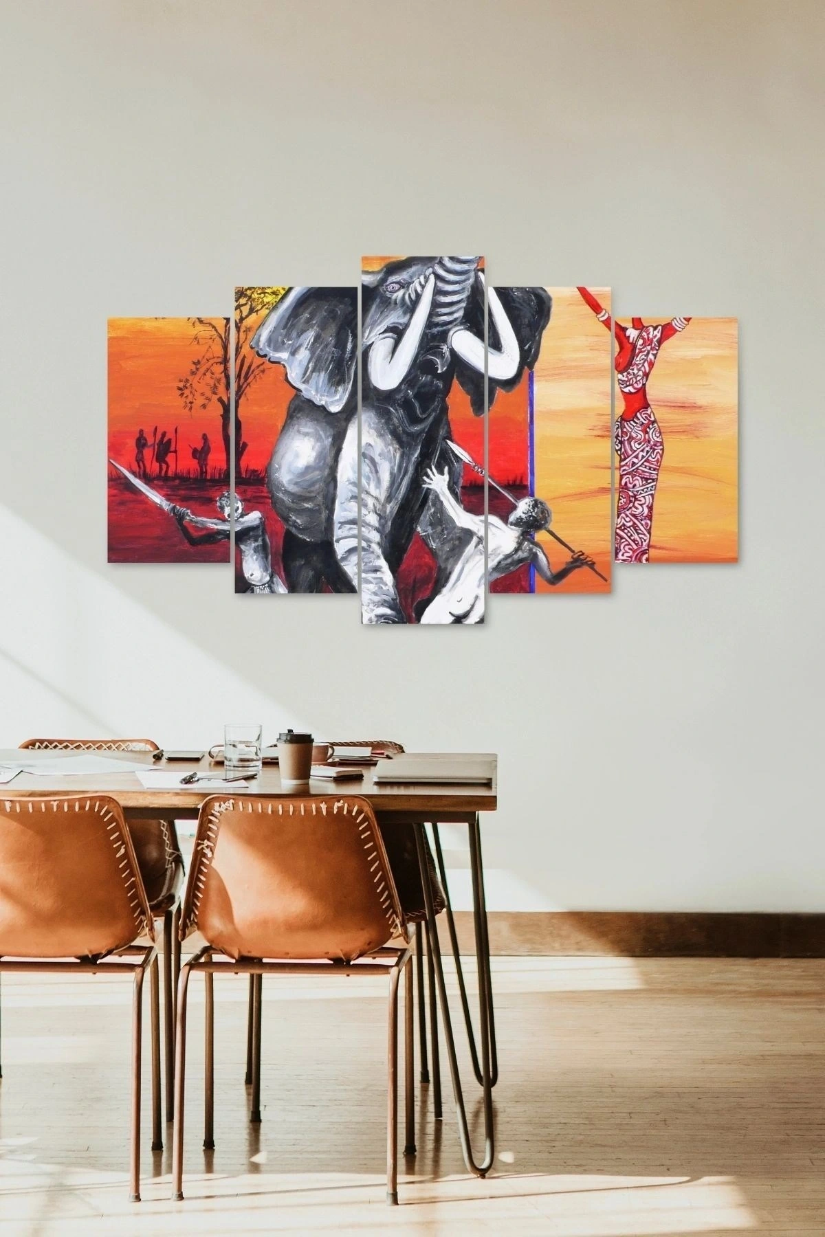 Modern tasarımıyla ev ve ofis dekorasyonunuza şıklık katan Filler ve İnsanlar 5 parçalı MDF tablo, estetik görünümüyle dikkat çeker; Dayanıklı ahşap malzemesi sayesinde uzun ömürlü kullanım sunar ve kalitesiyle ön plana çıkar;