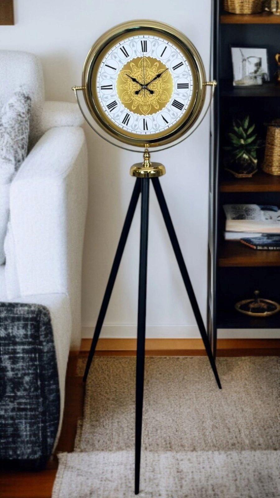 Siyah metal tripod ayakları sayesinde saat, zeminde son derece dengeli durur. Duvar montajına gerek kalmadan kullanılabilir ve istenilen alana kolayca taşınabilir. Yüksekliği sayesinde bulunduğu ortamda dekoratif bir odak noktası oluşturur. Sessiz ve akıcı çalışan mekanizması ile tik-tak sesi yapmaz; bu sayede salon, ofis, çalışma alanı veya otel lobileri gibi sessizliğin önemli olduğu mekânlar için idealdir.