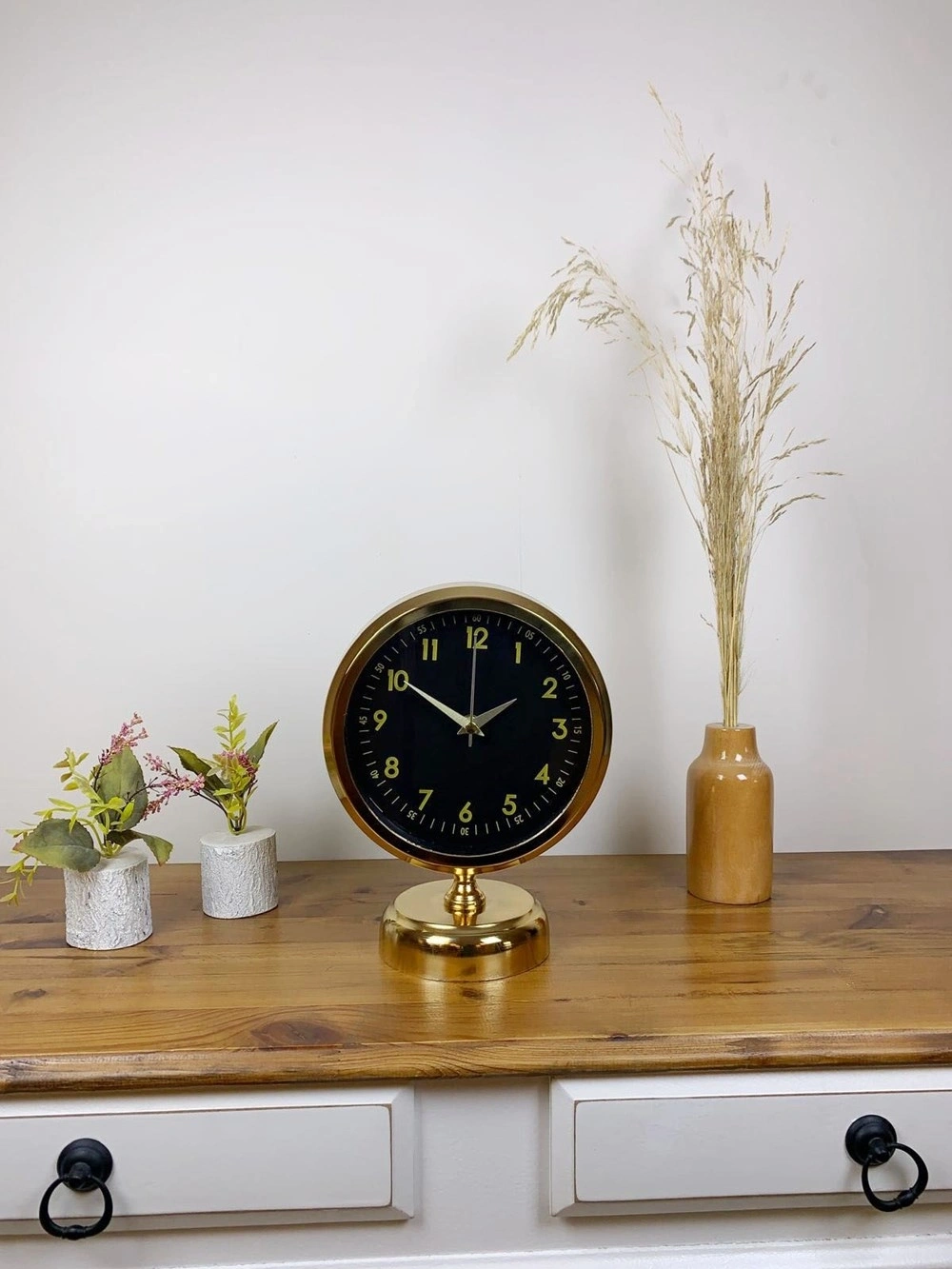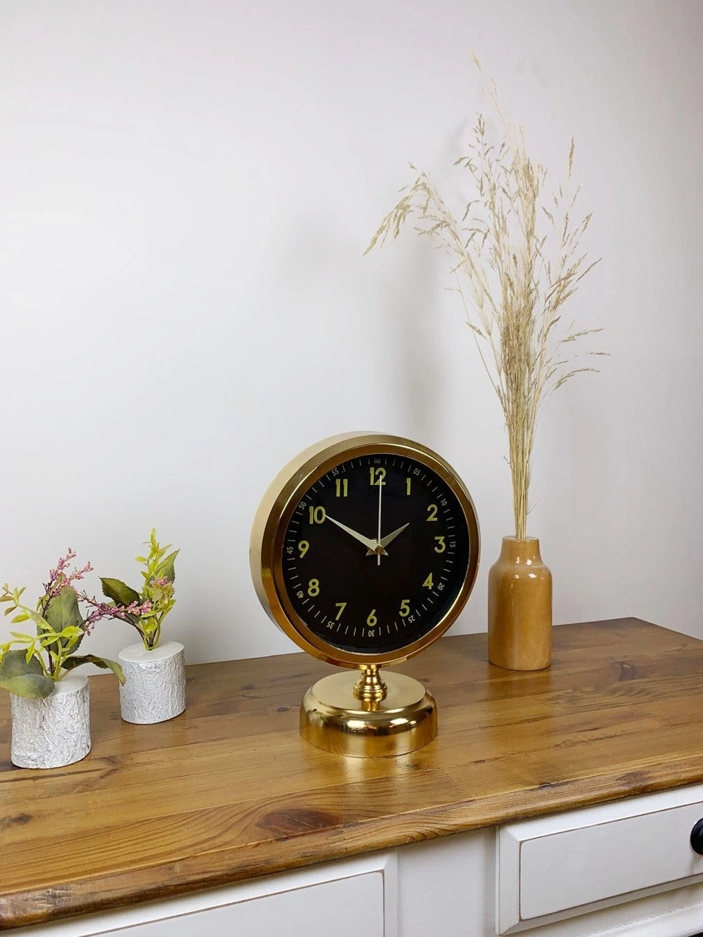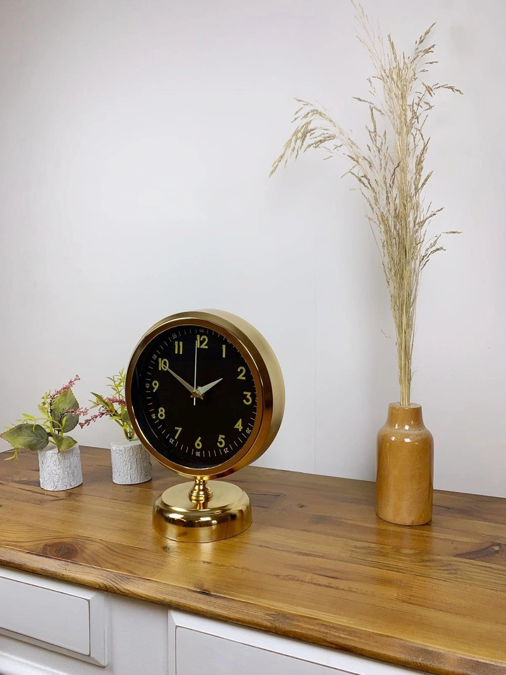 Şık ve modern tasarımıyla dikkat çeken  gold kaplama masa saatimiz, sessiz akar saniye mekanizmasıyla konforlu bir kullanım sunar. Gerçek cam koruma paneli sayesinde uzun ömürlü ve dayanıklıdır. Estetik görünümüyle hem ev hem de iş yerleri için ideal bir dekoratif üründür.