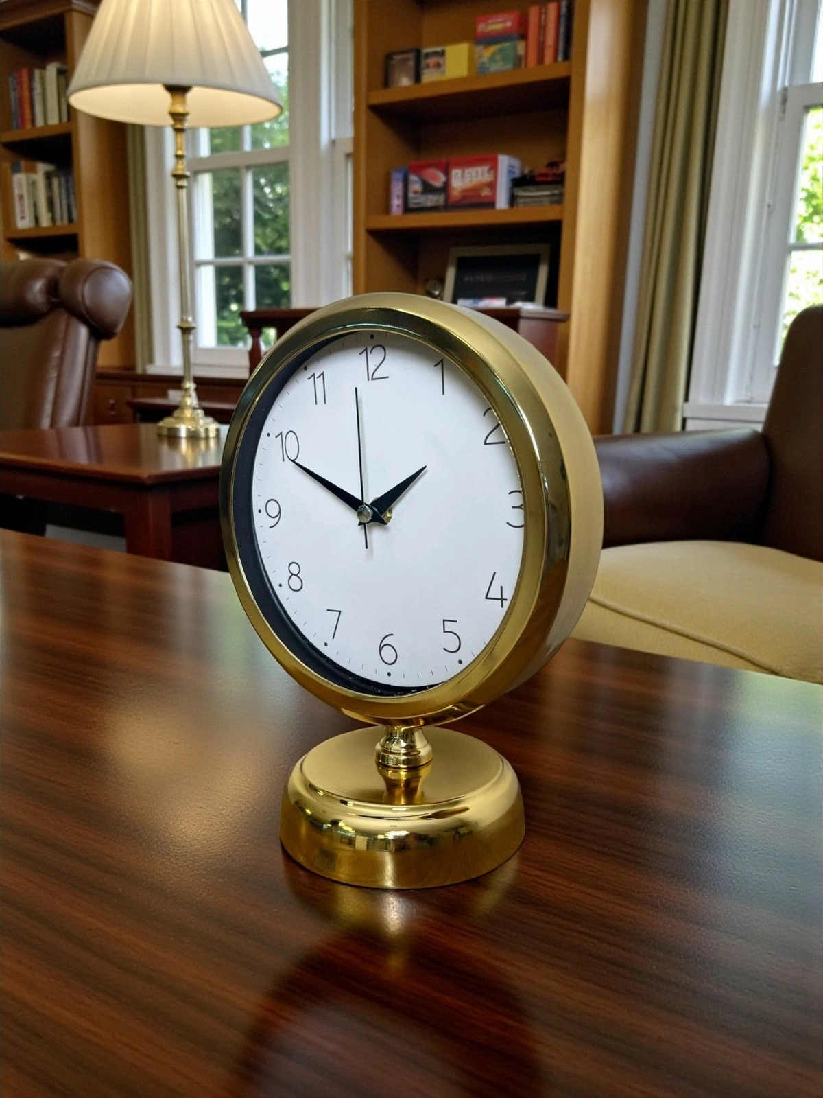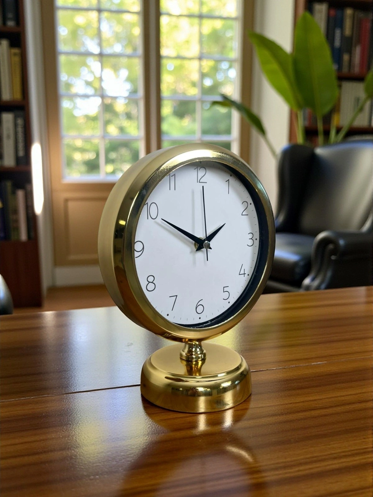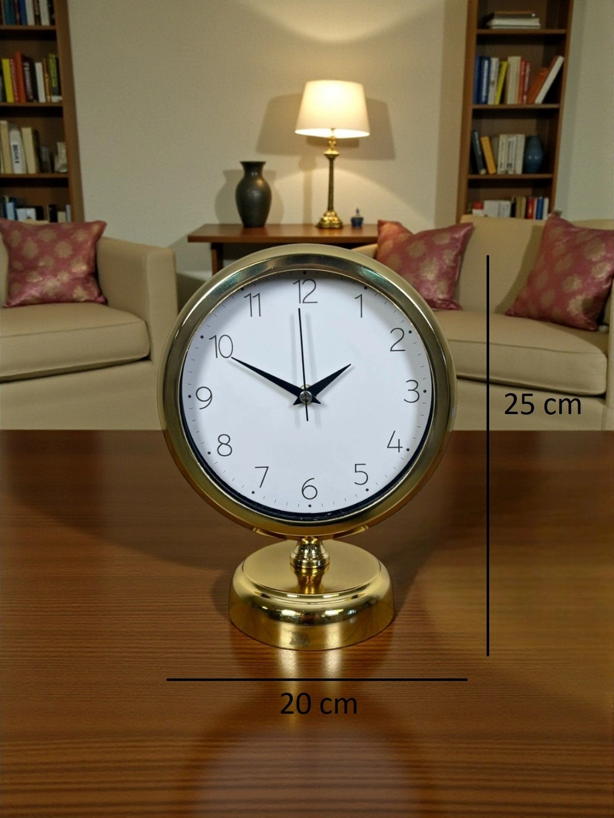 Dekorasyonda küçük ama etkisi büyük dokunuşlar vardır… Bu gold masa saati, bulunduğu ortamda hemen fark edilen lüks ve düzenli bir görünüm oluşturur. Sade beyaz kadranı, net okunabilir rakamları ve gold çerçevesiyle hem modern hem de klasik dekorasyonlara rahatça uyum sağlar. Çalışma masasında profesyonel bir hava, konsol üzerinde ise tamamlayıcı bir şıklık sunar.