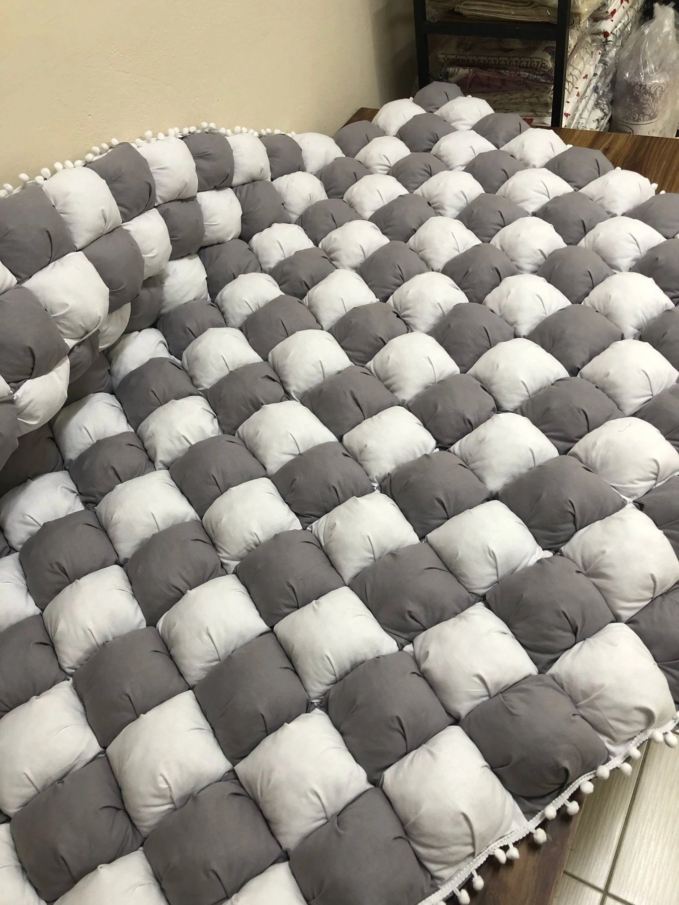 GRİ-BEYAZ 40 YAMA BEBEK YORGANI , BEBEK MİNDERİ