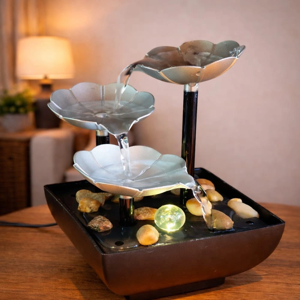 Gümüş Çiçek Tasarımlı LED Işıklı Su Şelalesi