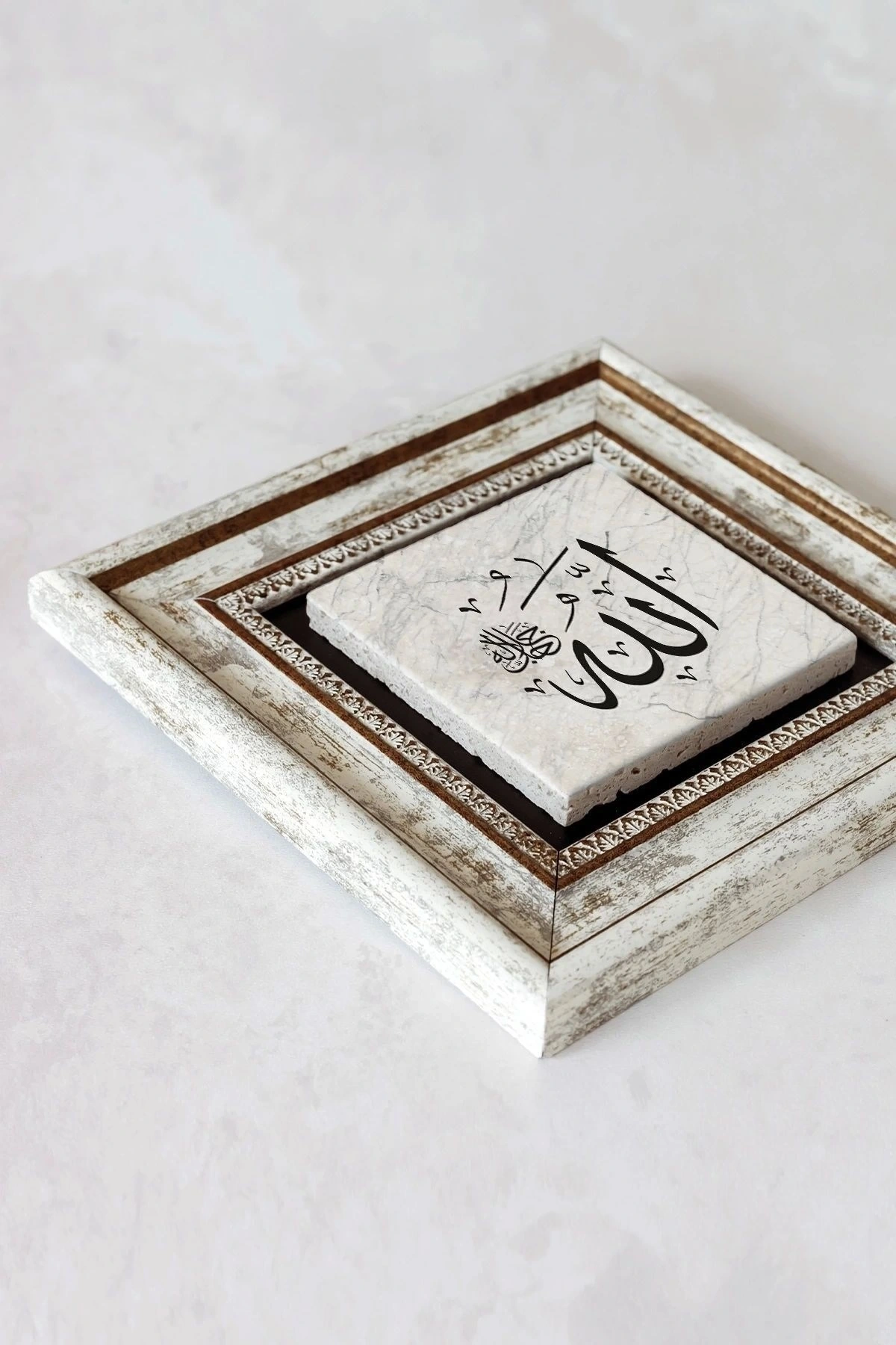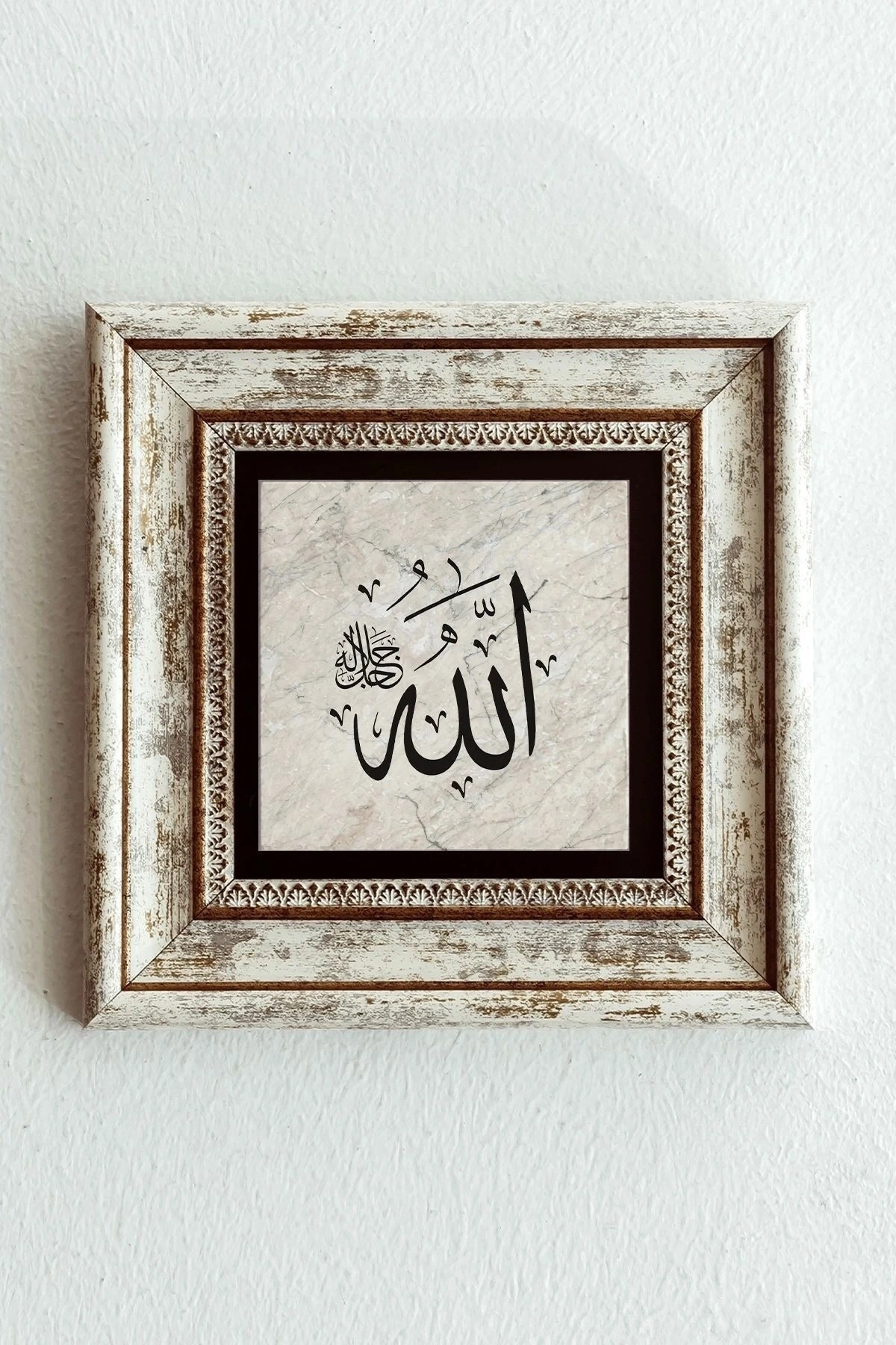 Hat Yazısı ''allah'' Yazılı Çerçeveli Taş Tablo , Çerçeveli Taş Duvar Dekoru-enkcrcvtbl-00121 20 cm