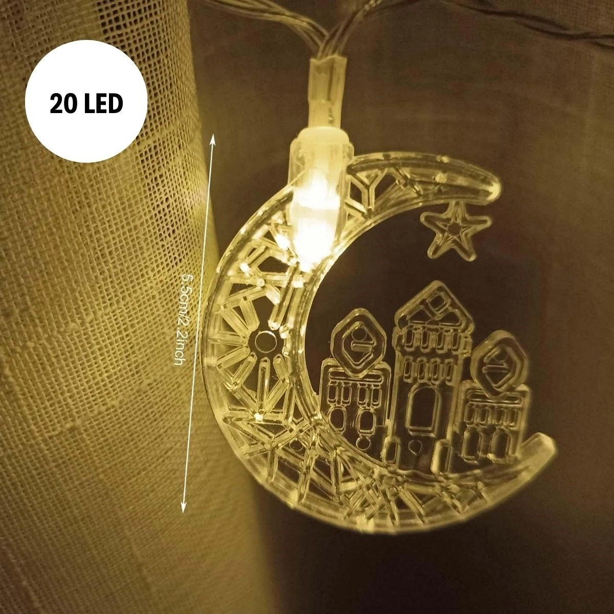 20 adet LED ışık, göz yormayan ve huzur veren bir aydınlatma sağlar. Gece lambası, ortam ışığı veya dekoratif aydınlatma olarak güvenle kullanılabilir.