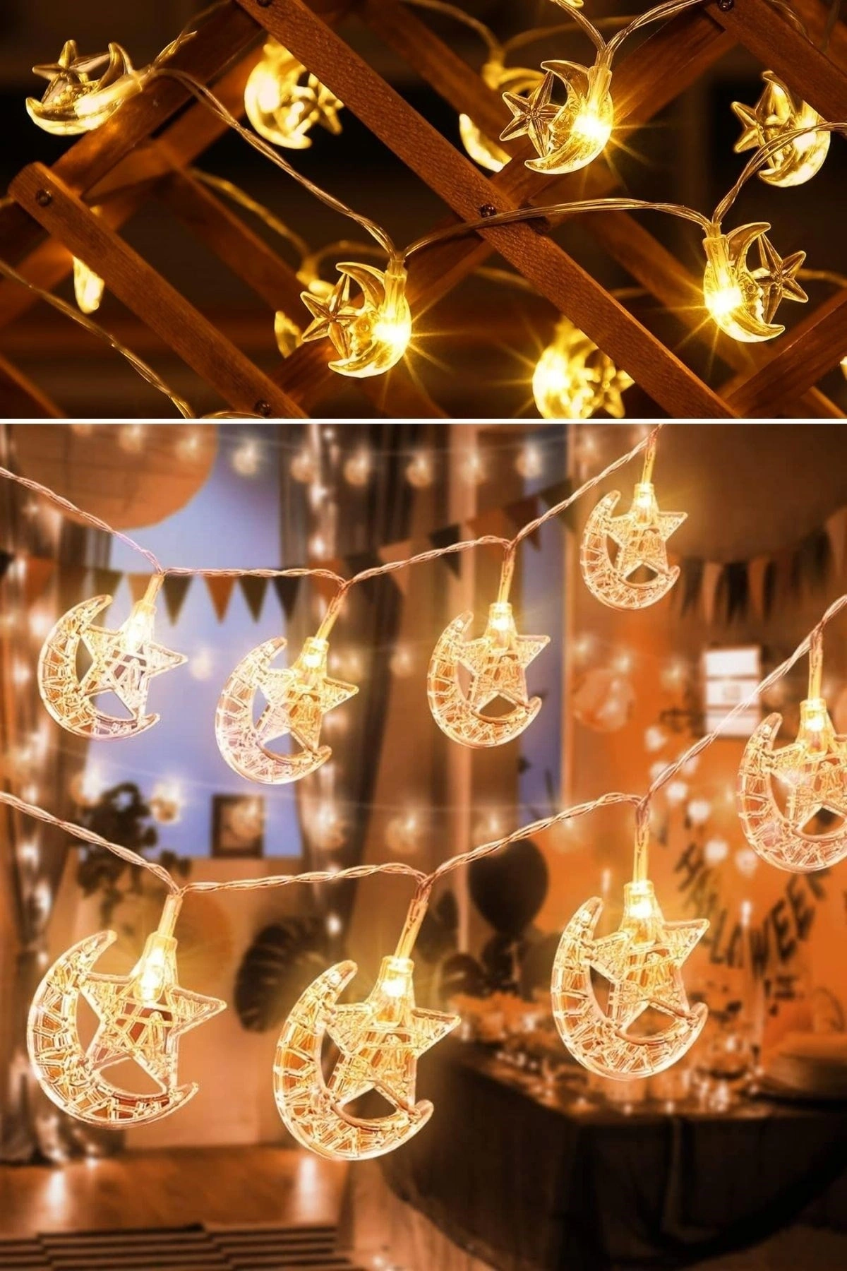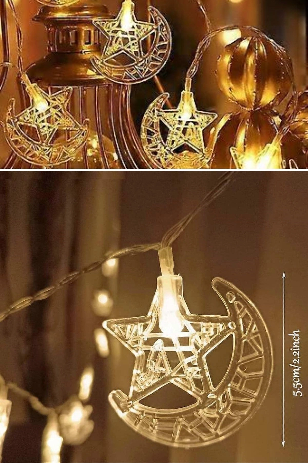 Hilal ve Yıldız Şekilli USB LED Işık – 20 LED’li Dekoratif Ramazan Dekorasyonu ve Ortam Aydınlatması