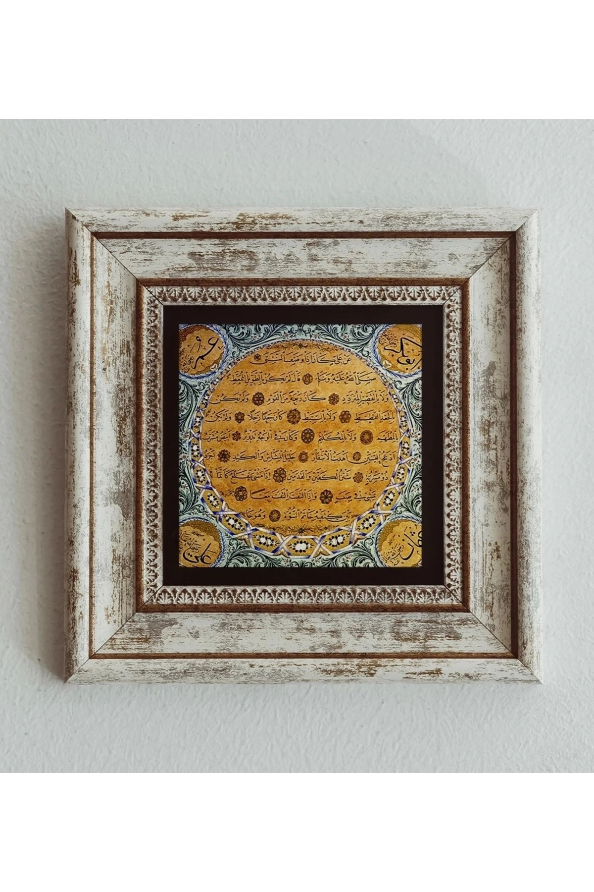 Ürün hakkında: Ölçüleri: 20 cm x 20 cm'dir. ; Kalınlık :2,5 cm'dir. ; Ürünün arka tarafında askı aparatı bulunmaktadır. ; Kullanılan çerçeveler yüksek kaliteli, eskitme görünümlü kompozit malzemeden üretilmiştir. ; Taşların yüzeyindeki baskı teknolojisi özel olup sağlığa hiçbir zararı yoktur. ; Kullanılan malzeme dağdan çıkan gerçek taş oldugu için yüzeyinde belli oranda gözenek bulunması ve renginin krem renginin tonlarını barındırması normaldir kimyasal malzeme teması Yüzey deformasyona maruz kalabilir. ; Nemli bezle silinerek temizlenebilir. ; Isıya, suya ve neme dayanıklıdır. ; Kutu içeriği: Orijinal kutu içerisinde 1 adet çerçeveli taş duvar dekoru. ; 1 adet çerçeveli duvar dekoru ağırlığı: 250 gr çerçeve askısı ile duvara montajı yapılabilir.;