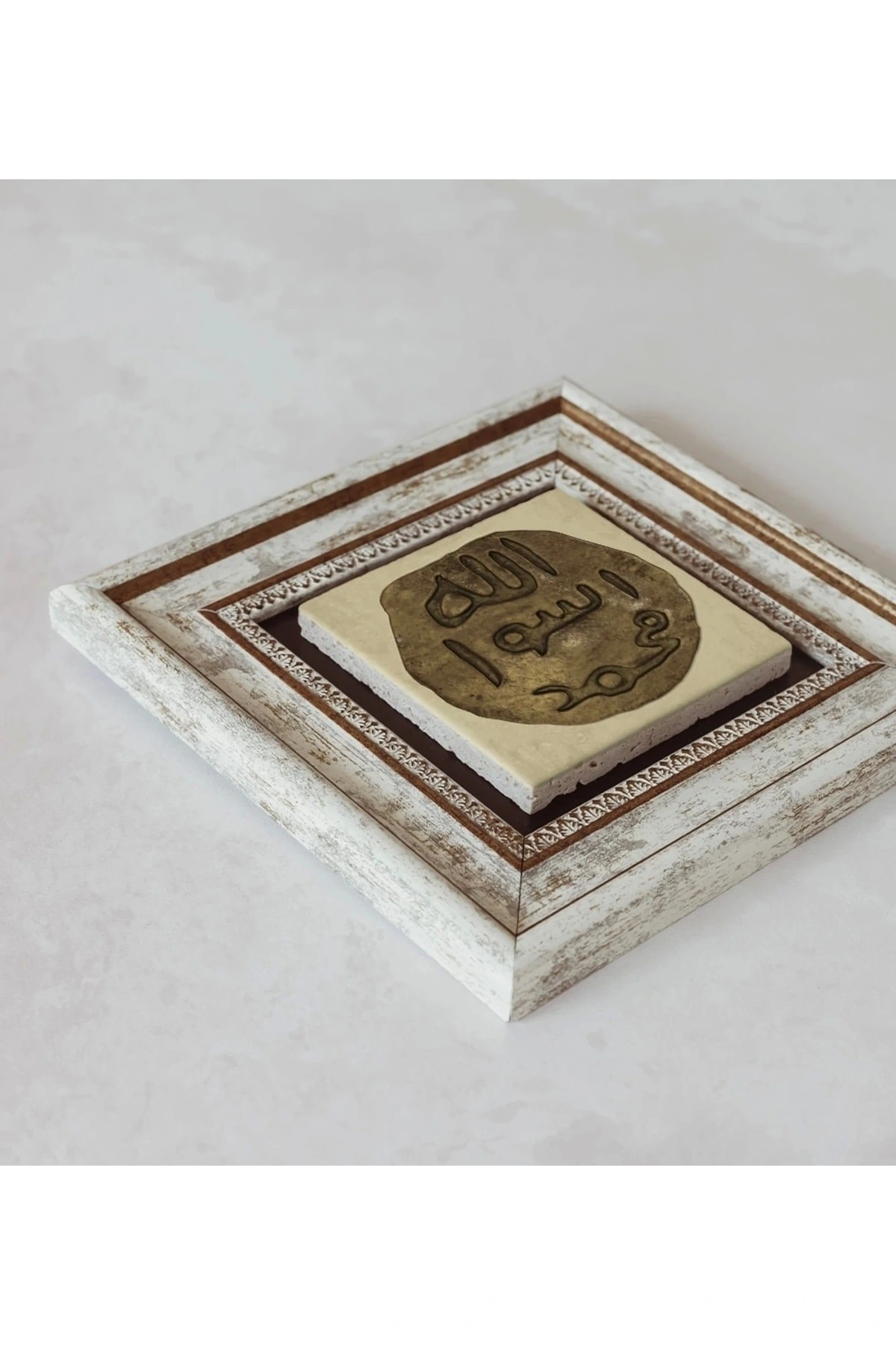 Hz. Muhammed 'in Mührü Çerçeveli Taş Tablo , Çerçeveli Taş Duvar Dekoru 20 cm