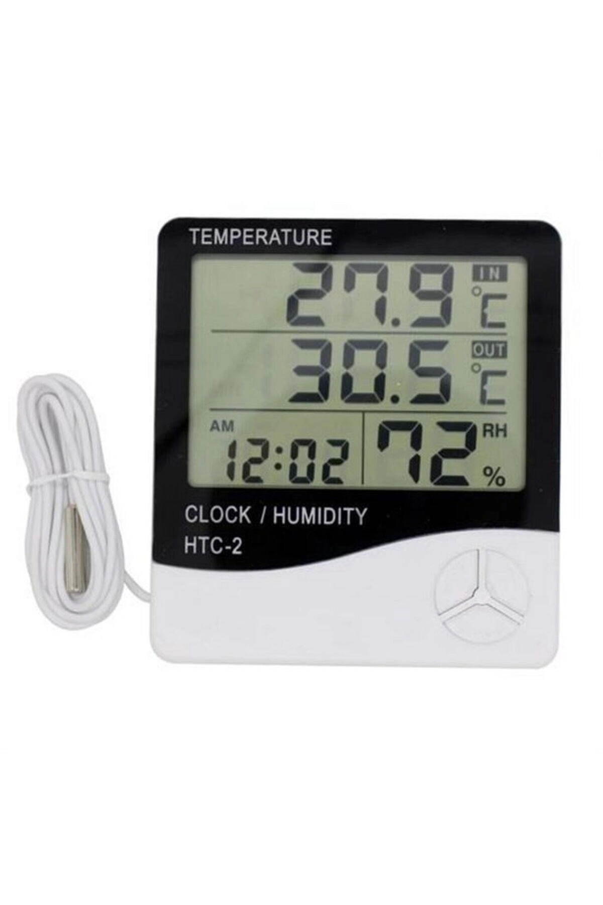 İç ve Dış Ortam Sıcaklığını Ölçebilen LCD Ekran Saat Göstergeli Alarmlı Nem Ölçer Termometre