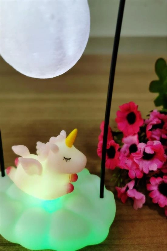 Işık Altında Sallanan Renk Değiştiren Unicornlu Gece Lambası