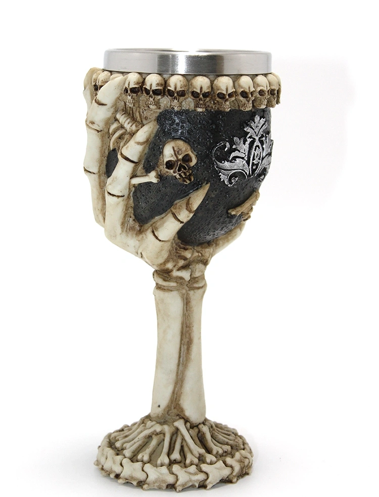 İskelet Eli Tutan 3D Kabartmalı Paslanmaz Çelik Kadeh Bardak