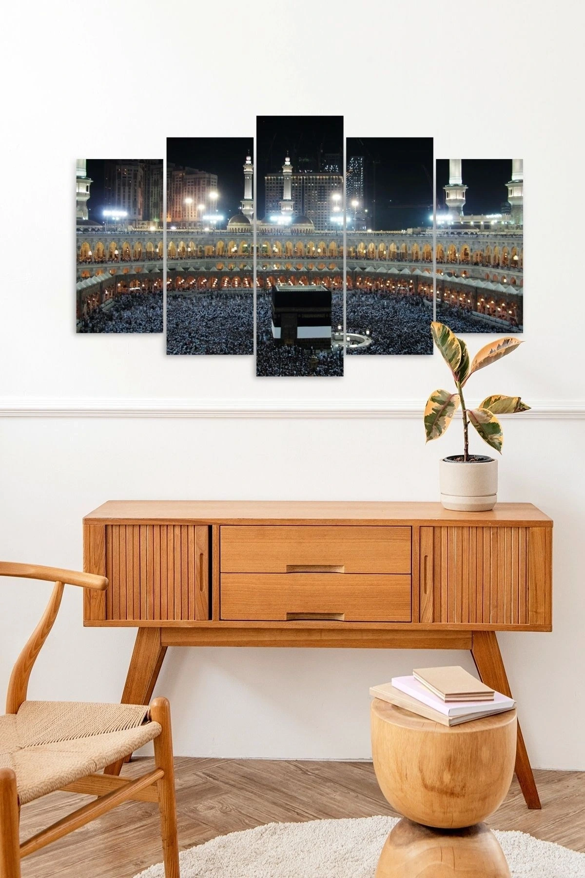 - Modern tasarımıyla evinizin dekorasyonuna şıklık katan 5 parçalı MDF tablo, Kabe manzarasını evinize taşıyor; - Kaliteli MDF malzemesi sayesinde uzun ömürlü kullanım sunar ve dayanıklılığı ile ön plana çıkar; - Ahşap yapısı, doğal dokusuyla mekanınıza sıcaklık ve estetik bir görünüm kazandırır; - Modern stil sahibi olan bu tablo, çağdaş dekorasyon anlayışınıza uyum sağlayarak evinizin atmosferini zenginleştirir;
