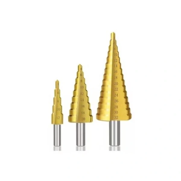 KADEMELİ MATKAP UCU SAC DELME PANÇ SETİÜrün Özellikleri3 Parça Yüksek Hız Çeliğinden mamul kademeli matkap uç seti.Çift yiv sistemi ile çatlamadan kesim.Küçük Delgi : 4, 6, 8, 10, 12 mmOrta Delgi : 4, 6, 8, 10, 12, 14, 16, 18, 20 mmBüyük Delgi : 4, 6, 8, 10, 12, 14, 16, 18, 20, 22, 24, 26, 28, 30, 32 mmNormal HSS uçlara oranla 6 kata oranla daha dayanıklı kalay kaplama.Paket İçeriği1 adet kademeli matkap ucu sac delme panç seti