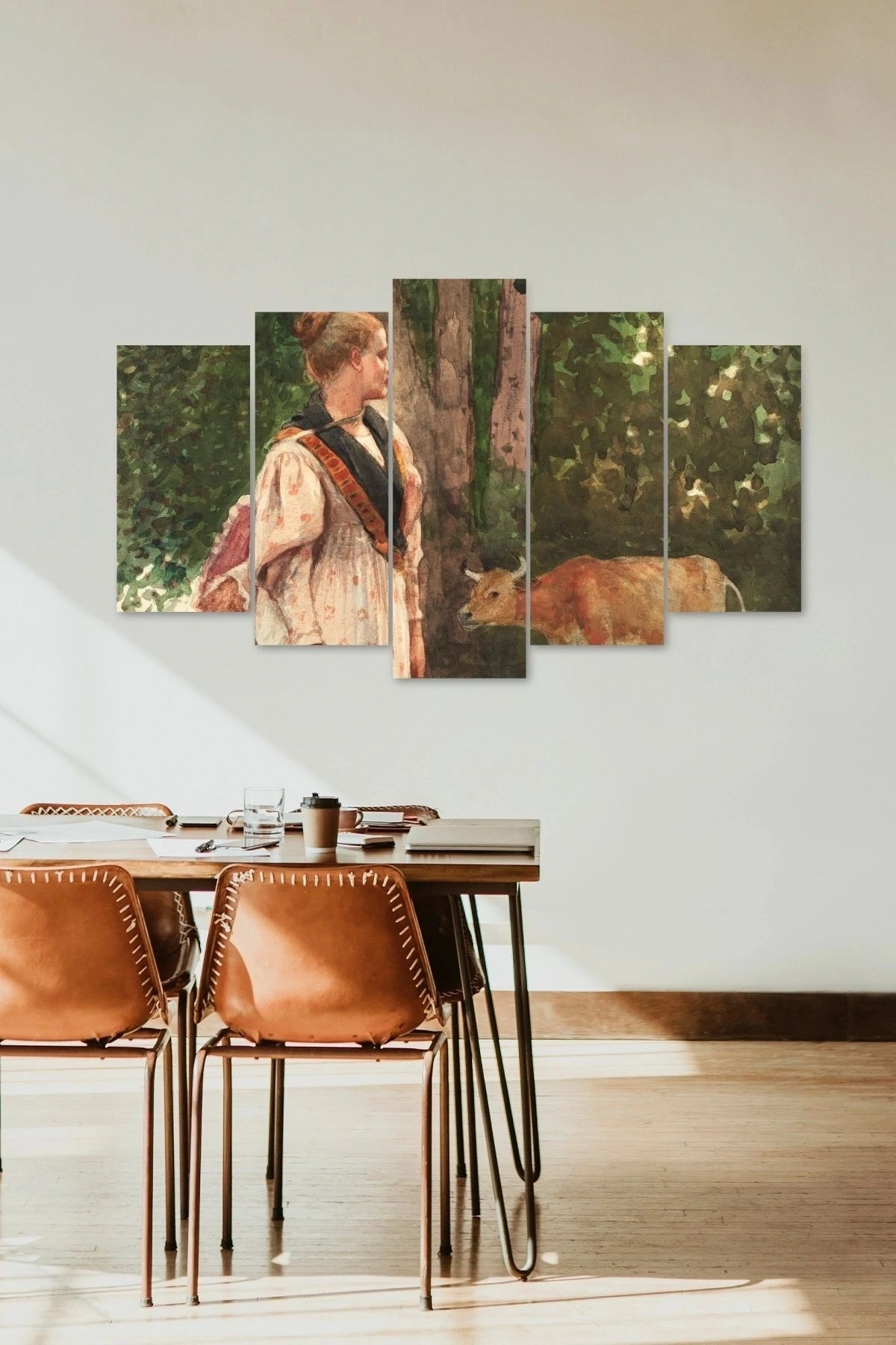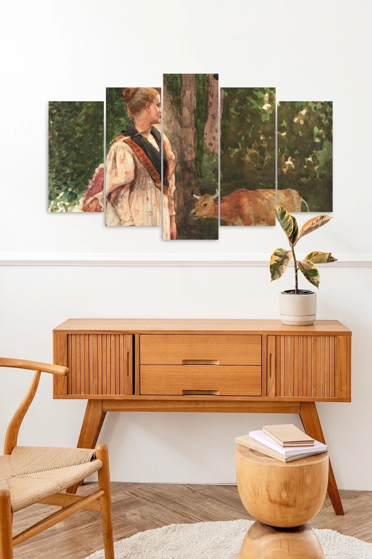 Kadın Manzarası 5 Parçalı Mdf Tablo 60 x 100
