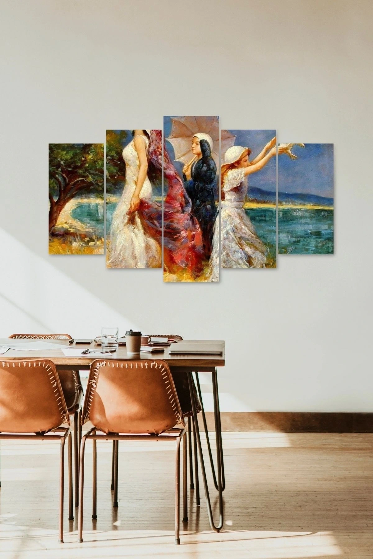 Kadın Manzarası 5 Parçalı Mdf Tablo 60 x 100