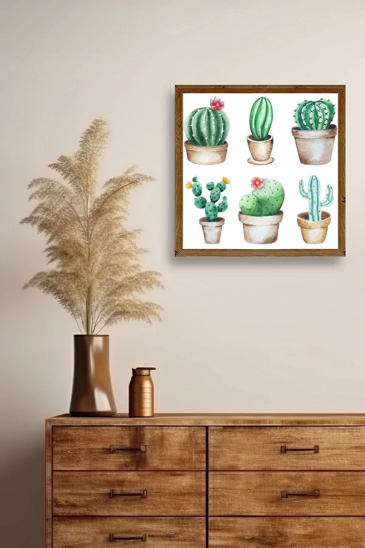 Kaktüs Ahşap Çerçeveli Tablo 42 x 42