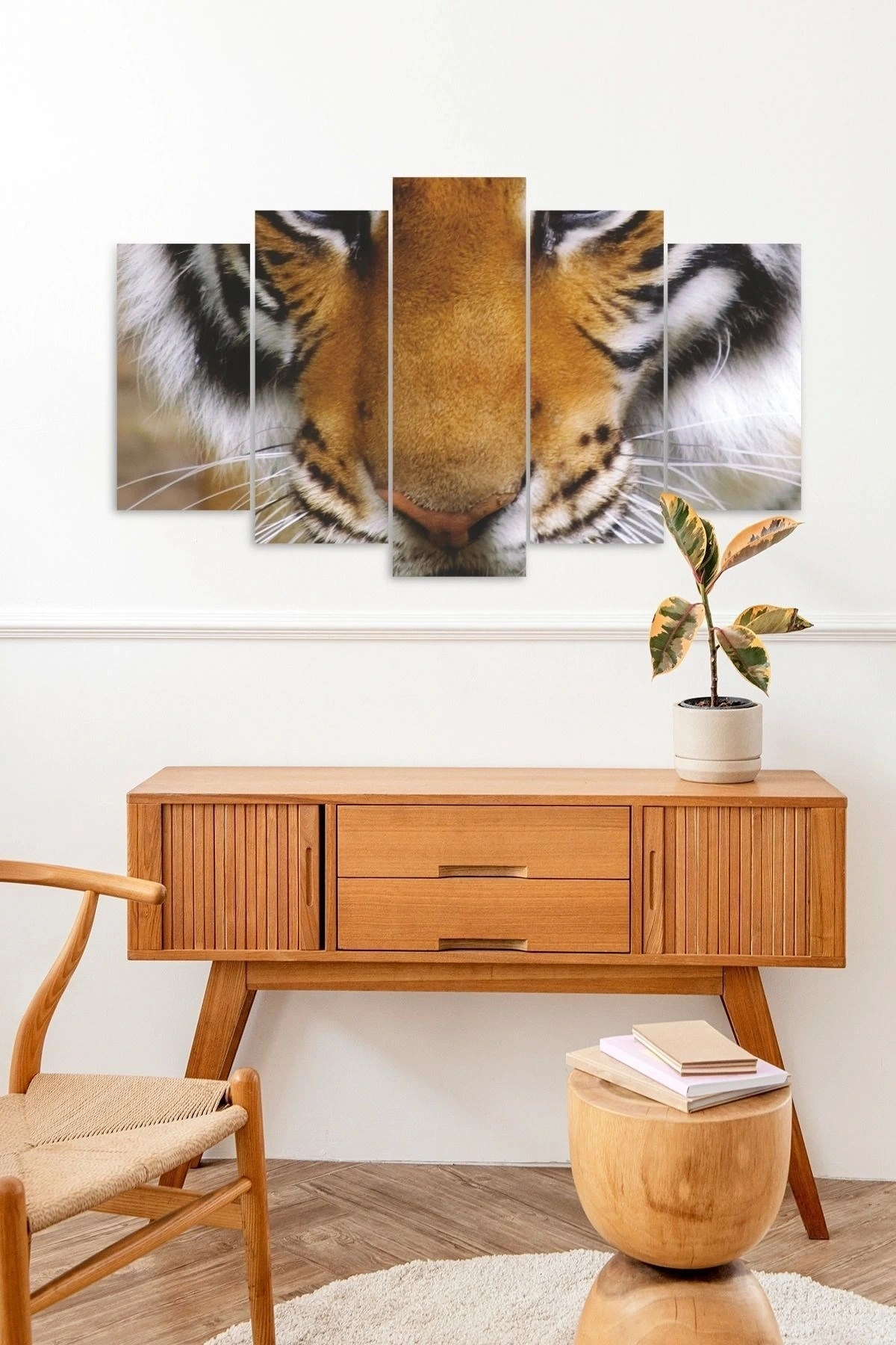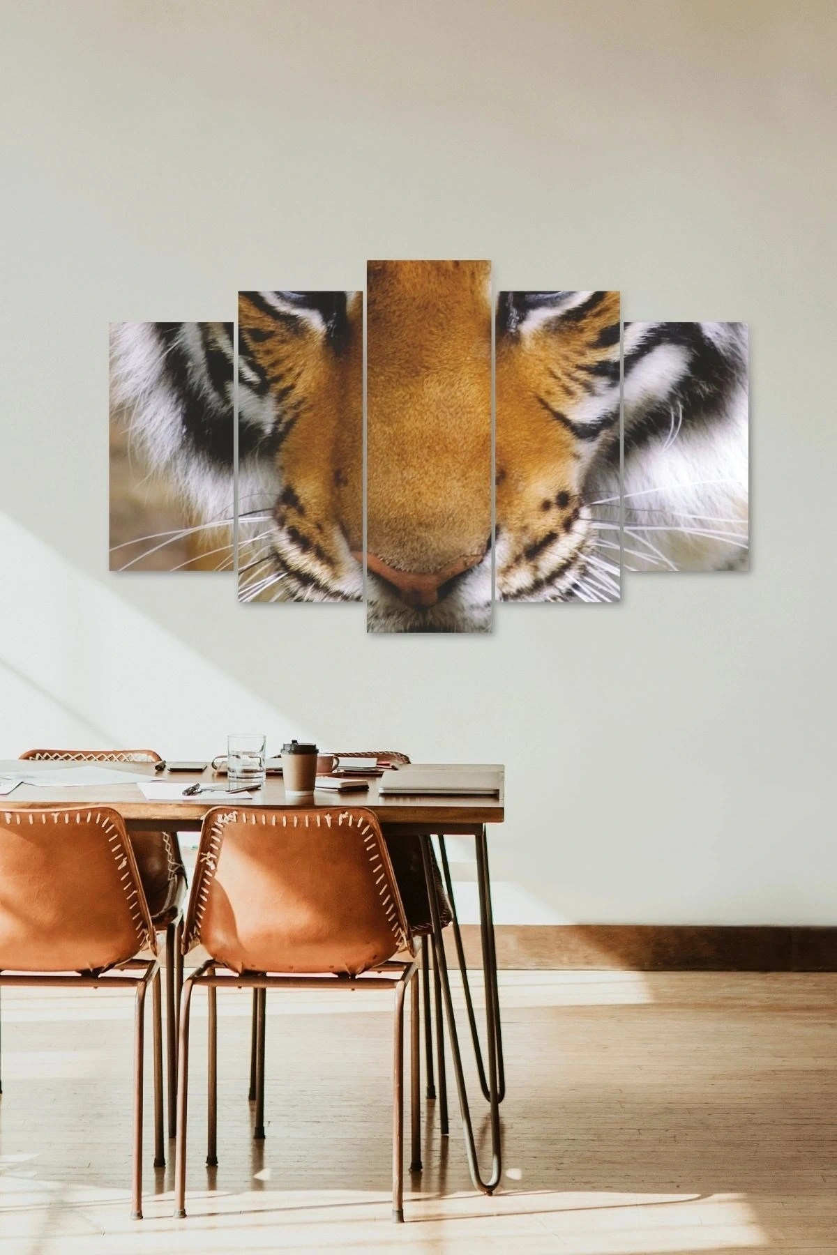 Modern tasarımıyla evinizin dekorasyonuna şıklık katan Kaplan Manzara 5 parçalı MDF tablo, çağdaş yaşam alanlarınızın vazgeçilmez bir parçası olacak; Yüksek kaliteli MDF malzemesi sayesinde uzun ömürlü kullanım sunar ve dayanıklılığı ile ön plana çıkar; Kaplan Manzara 5 parçalı MDF tablo, doğal ahşap dokusuyla mekanınıza sıcaklık ve estetik bir görünüm kazandırır;