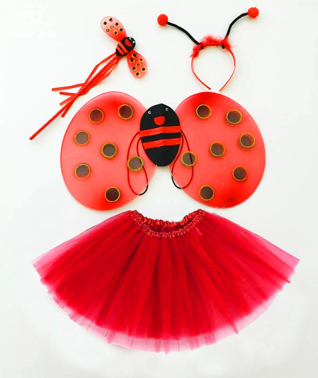 KIRMIZI UĞUR BÖCEĞİ KOSTÜM SETİ - TÜTÜ, KANAT, TAÇ, ASAÜrün ÖzellikleriKırmızı Uğur Böceği Kostüm Seti, çocukların hayal gücünü canlandıracak eğlenceli ve şık bir kostüm setidir. Set, tatlı bir uğur böceği görünümü için tasarlanmış tütü, kanat, taç ve asa içerir. Çocukların kostüm partilerinde, okul etkinliklerinde veya Halloween gibi özel günlerde kullanabileceği bu set, her yaştan miniklere eğlenceli bir performans fırsatı sunar. Konforlu ve hafif malzemelerden üretilmiş olup, çocukların rahatça hareket etmelerini sağlar.Paket İçeriği1 Adet Kırmızı Uğur Böceği Tütüsü1 Adet Uğur Böceği Kanatları1 Adet Uğur Böceği Taçı1 Adet Uğur Böceği Asası