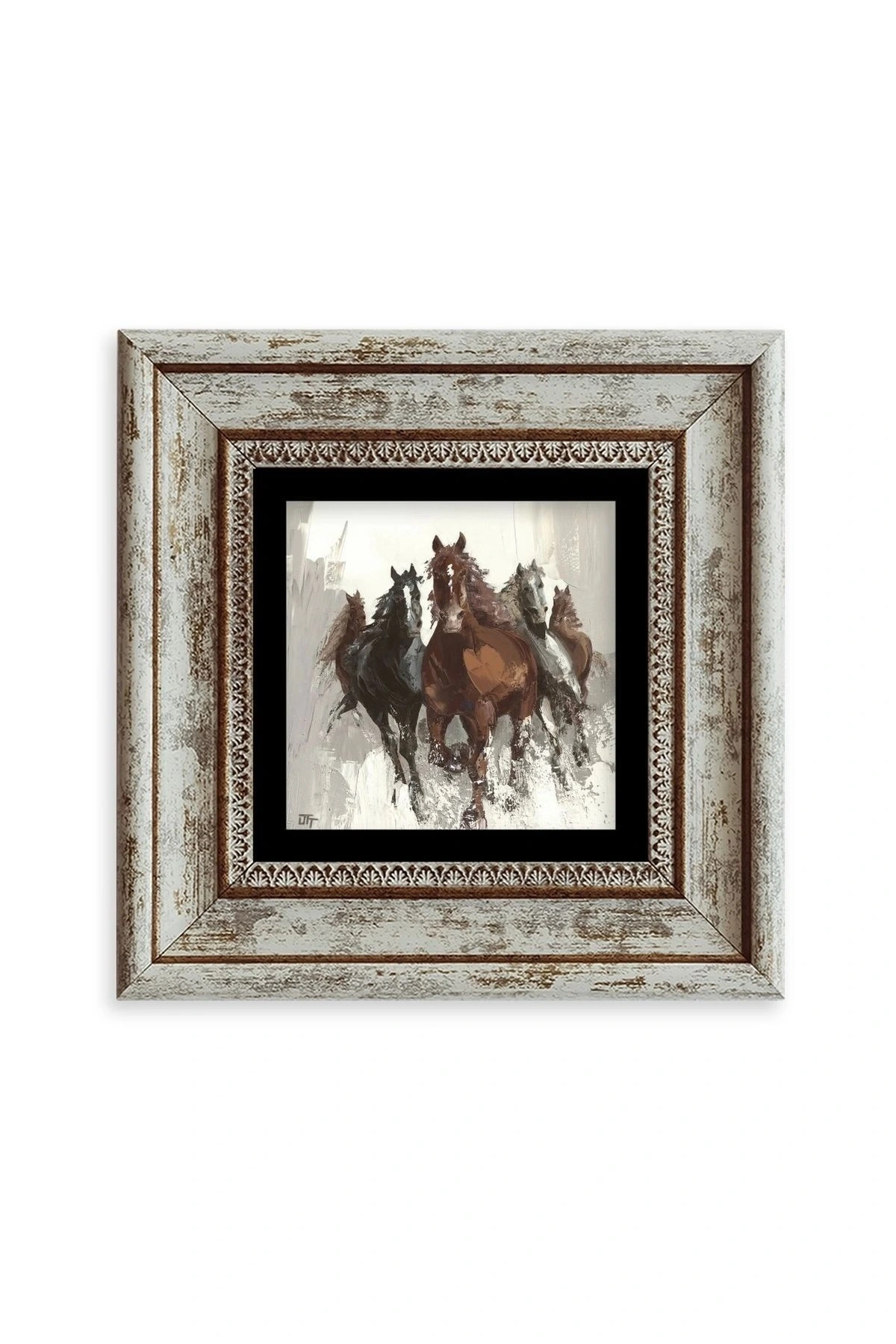 Koşan Atlar Yağlı Boya Çerçeveli Taş Tablo 20 cm