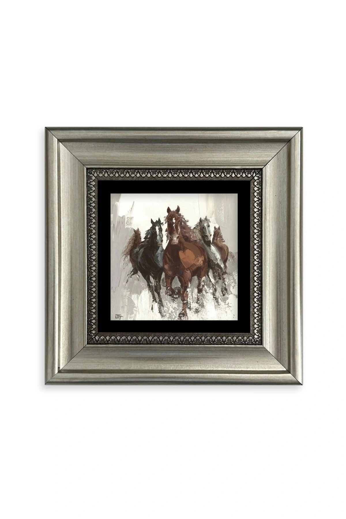 Koşan Atlar Yağlı Boya Çerçeveli Taş Tablo 20 cm