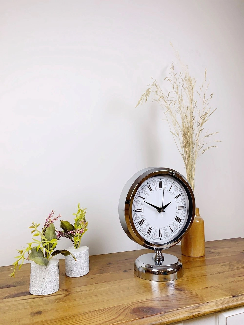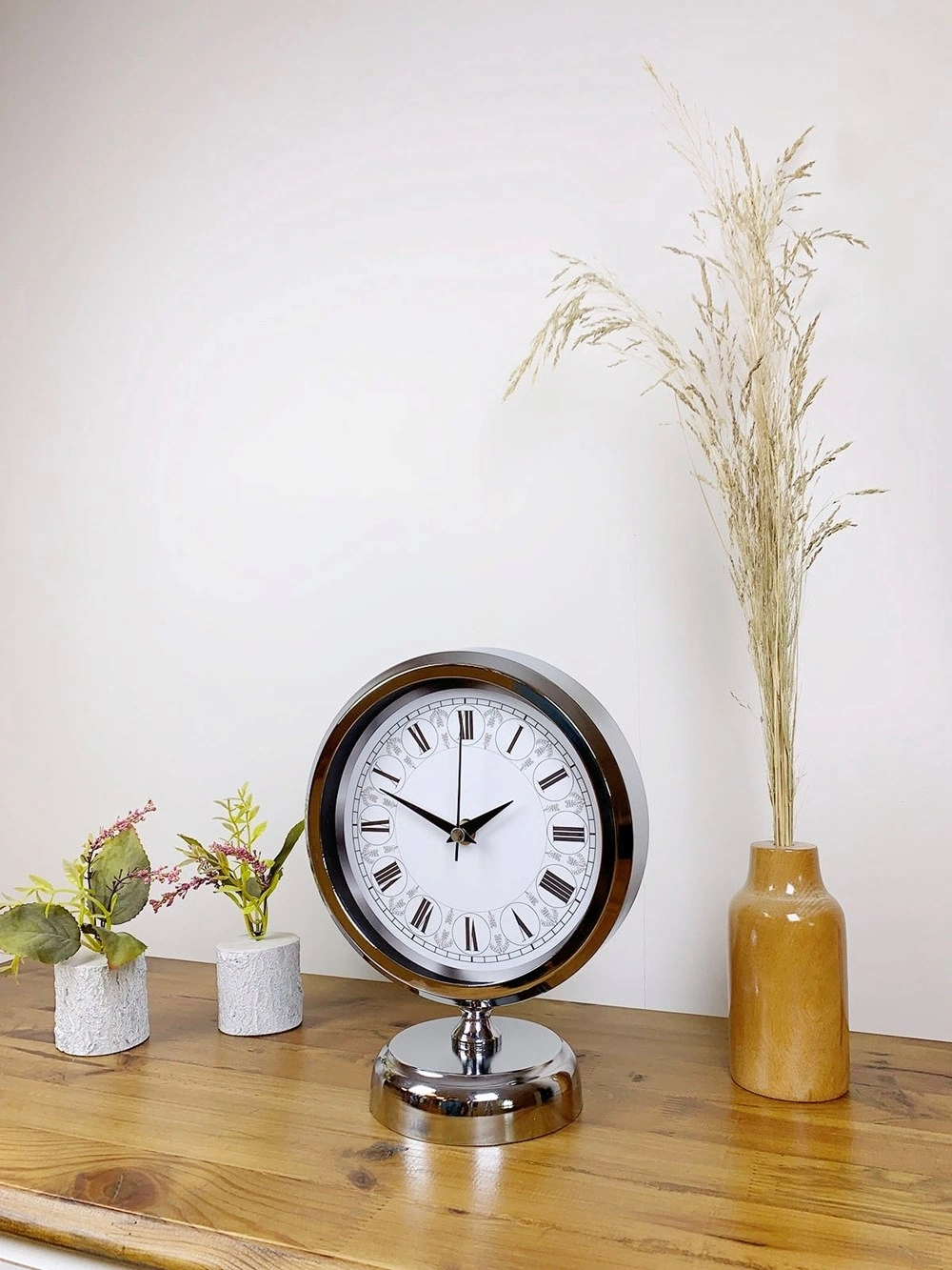Krom Metal Desenli Roma Rakamlı Masa Saati
