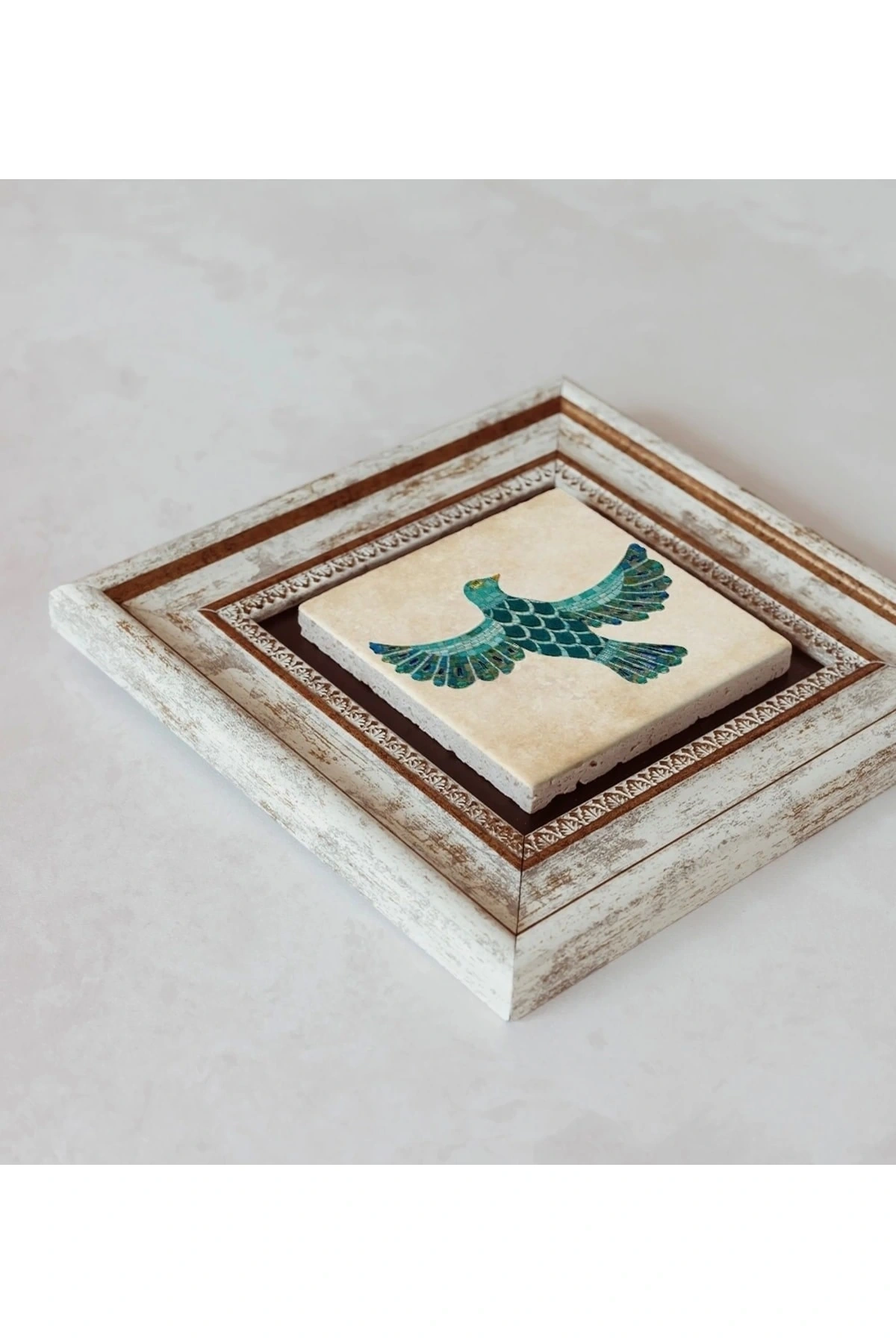 Kuş Çerçeveli Taş Tablo , Çerçeveli Taş Duvar Dekoru 20 cm