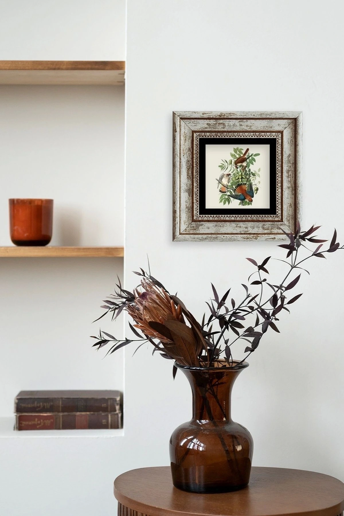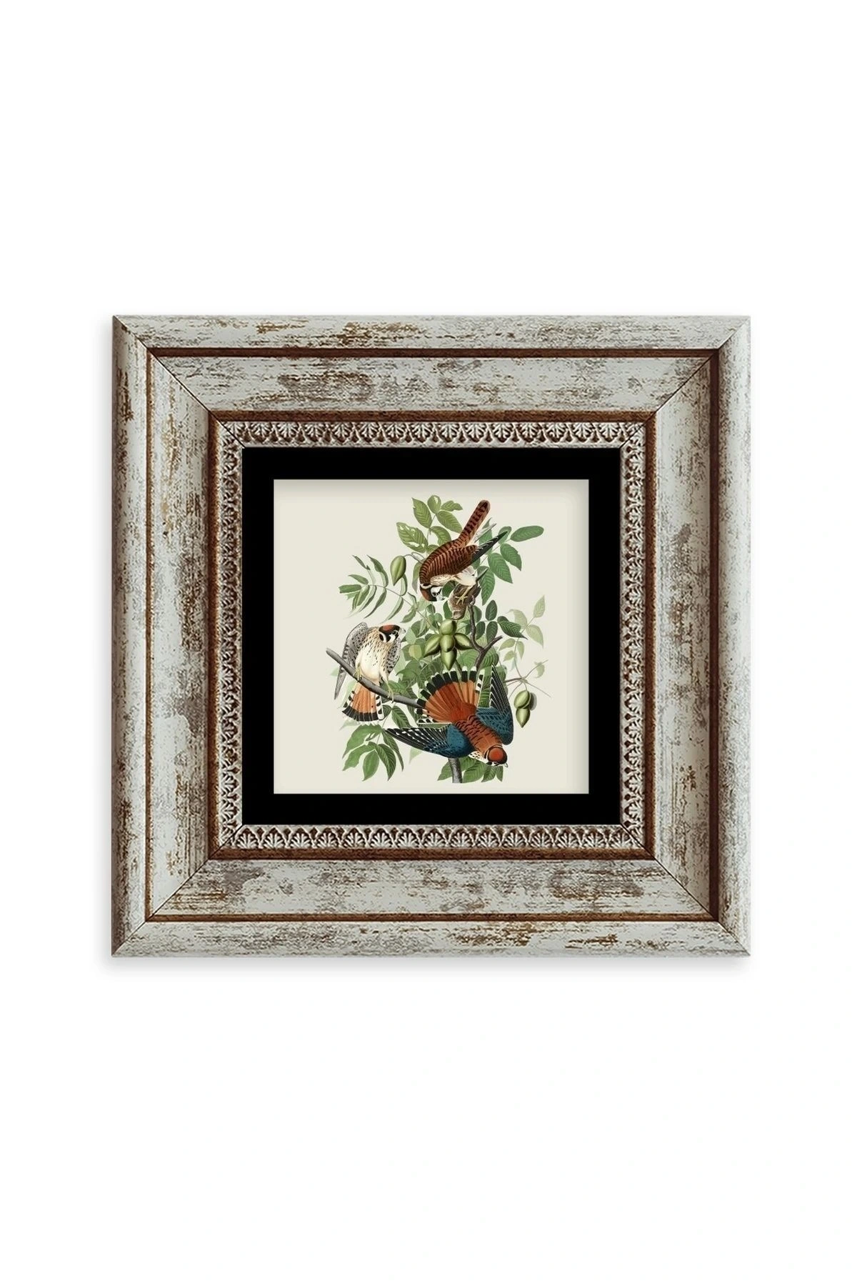 Kuş ve Yapraklar Çerçeveli Taş Tablo 20 cm