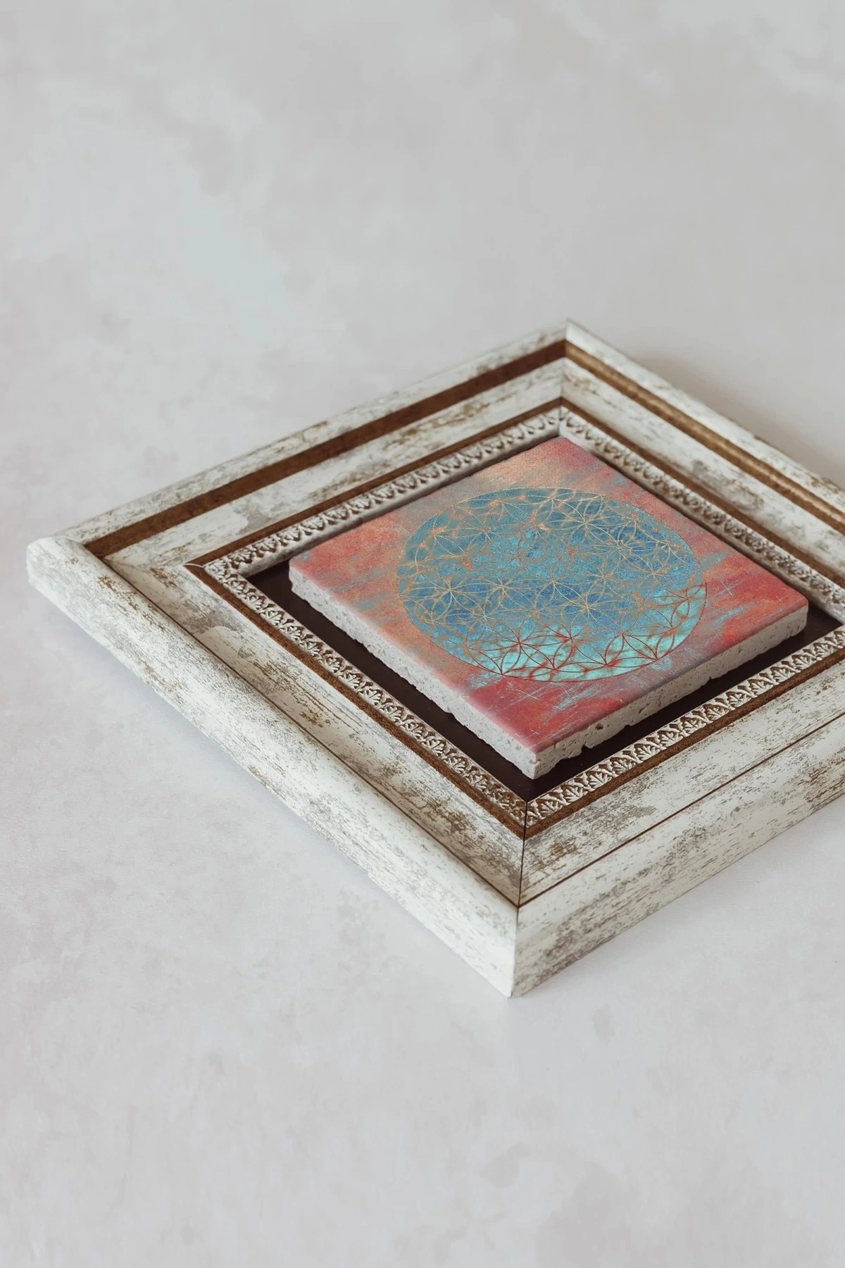 Lotus - Yaşam Çiçeği Çerçeveli Taş Tablo , Çerçeveli Taş Duvar Dekoru-enkcrcvtbl-00093 20 cm