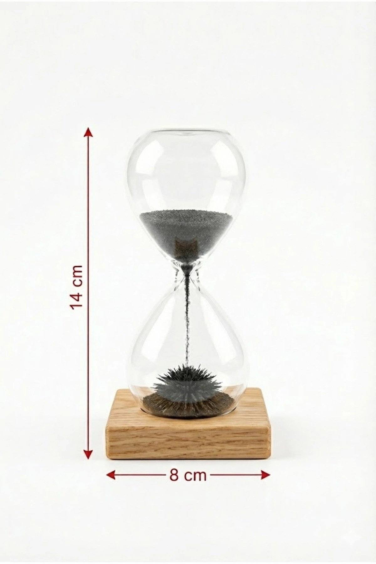 Manyetik Kum Saati Mıknatıslı Ahşap Standlı Dekoratif Masaüstü Hediyelik Süs Eşyası (14 cm)