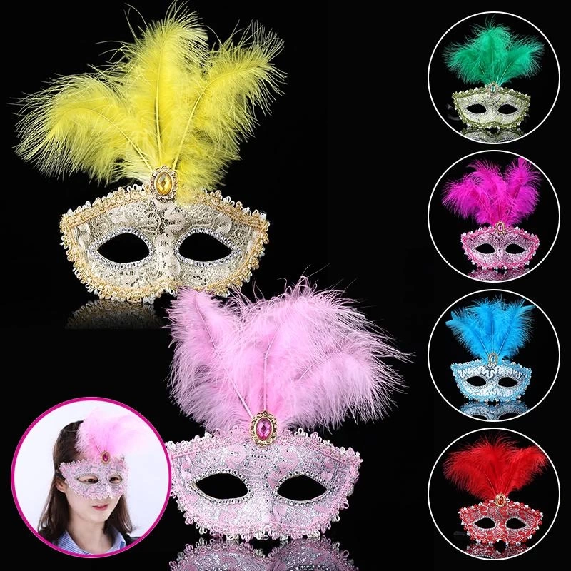 Mavi Dantel İşlemeli Mavi Tüylü Balo Parti Maskesi