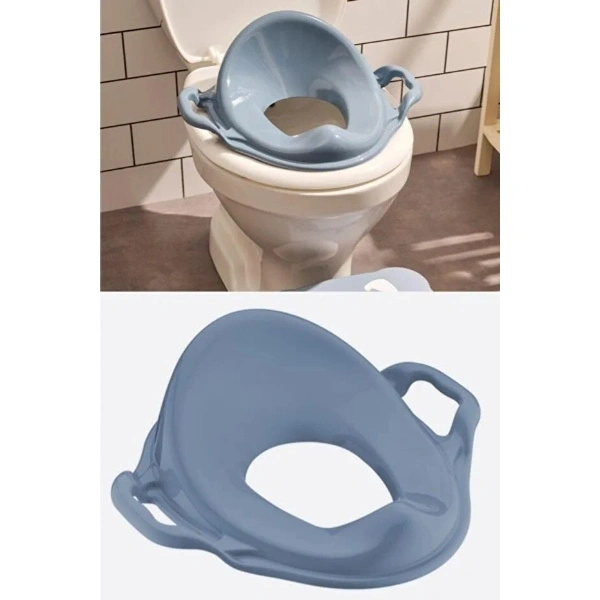 MAVİ KULPLU ÇOCUK KLOZET ADAPTÖRÜÜrün ÖzellikleriMavi kulplu çocuk klozet adaptörü, tuvalet eğitim sürecindeki çocuklar için güvenli, konforlu ve pratik bir kullanım sunmak üzere özel olarak tasarlanmıştır. Ergonomik formu sayesinde standart klozetlerin üzerine kolayca yerleştirilebilir ve çocukların klozeti korkmadan kullanabilmesine yardımcı olur. Yan kısımlarda yer alan kulplar, çocuğun dengede kalmasını destekleyerek oturma sırasında ekstra güven hissi sağlar. Kaymaz yapıya sahip alt yüzeyi, kullanım esnasında adaptörün klozet üzerinde sabit kalmasına yardımcı olur ve istenmeyen kaymaları önler. Yuvarlatılmış kenar yapısı ve pürüzsüz yüzeyi sayesinde çocuk cildine uyumlu, rahat ve tahriş etmeyen bir deneyim sunar. Dayanıklı plastik malzemeden üretilmiş olup uzun süreli kullanım için uygundur ve kolay temizlenebilir yapısıyla hijyenik kullanım avantajı sağlar. Hafif ve taşınabilir tasarımı sayesinde evde, seyahatte veya misafirlikte rahatlıkla kullanılabilir. Canlı mavi rengi ile çocukların ilgisini çekerken tuvalet eğitimini daha eğlenceli ve motive edici hale getirir. Tuvalet alışkanlığının kazandırılmasında ebeveynlere büyük kolaylık sağlayan bu adaptör, çocukların bağımsız kullanım becerilerini destekler.Paket İçeriği1 adet mavi kulplu çocuk klozet adaptörü