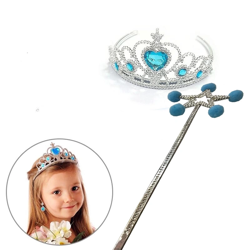 Mavi Ponponlu Karlar Ülkesi Elsa Asası ve Mavi Kalp Taşlı Elsa Tacı (5365)