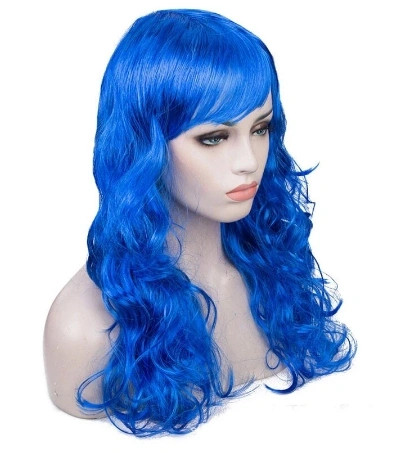 Mavi Renk Uzun Dalgalı Parti Peruğu (5365)