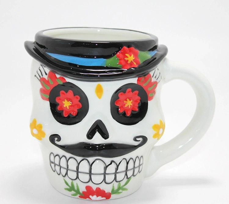 Meksikalı Kurukafa Karakterli Kabartmalı Kupa Bardak