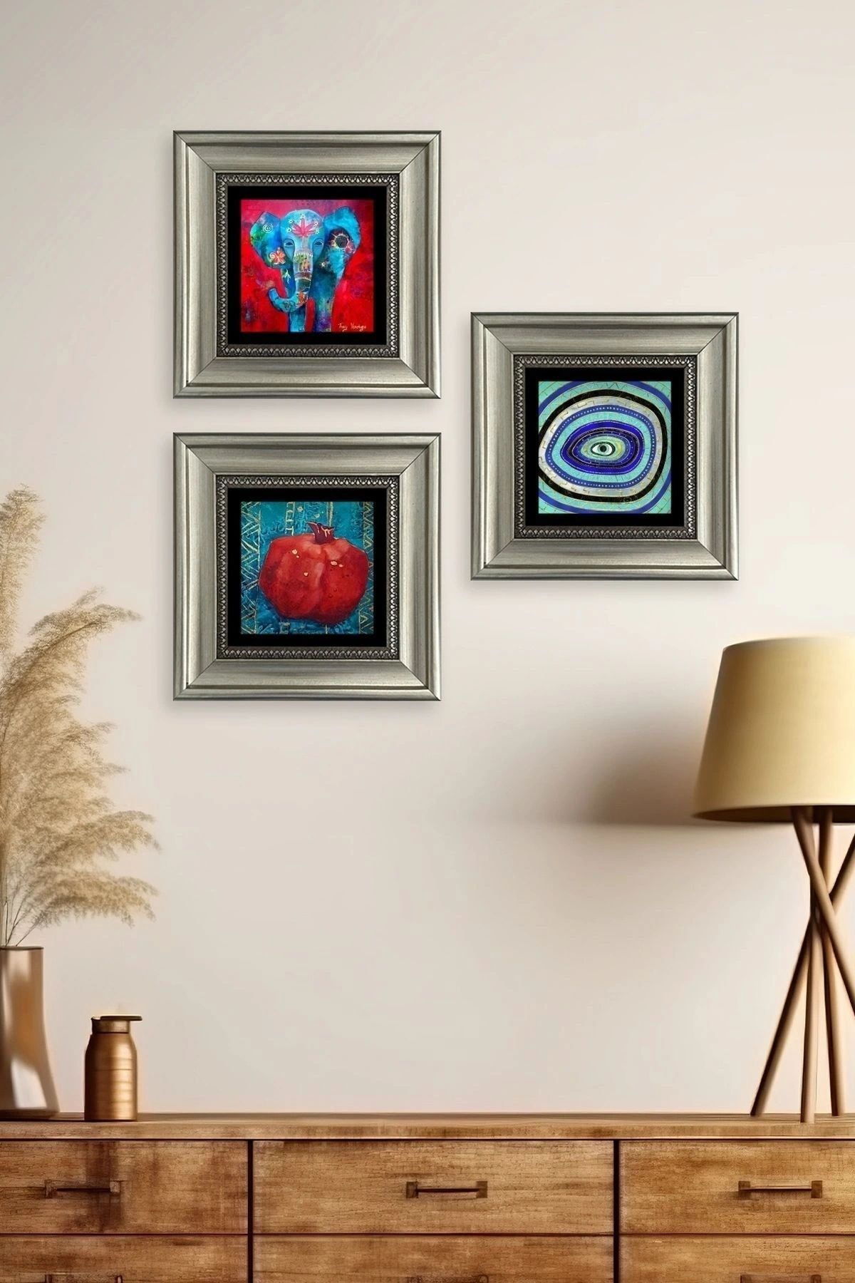 Mistik 3 lü Set Çerçeveli Taş Tablo 20 cm