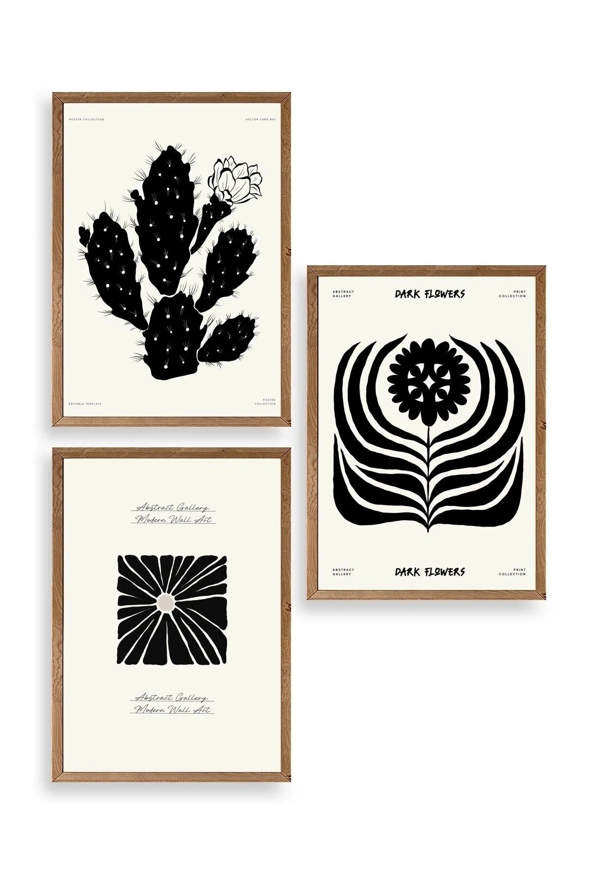 Modern Üçlü Ahşap Çerçeveli Tablo 23 x 30