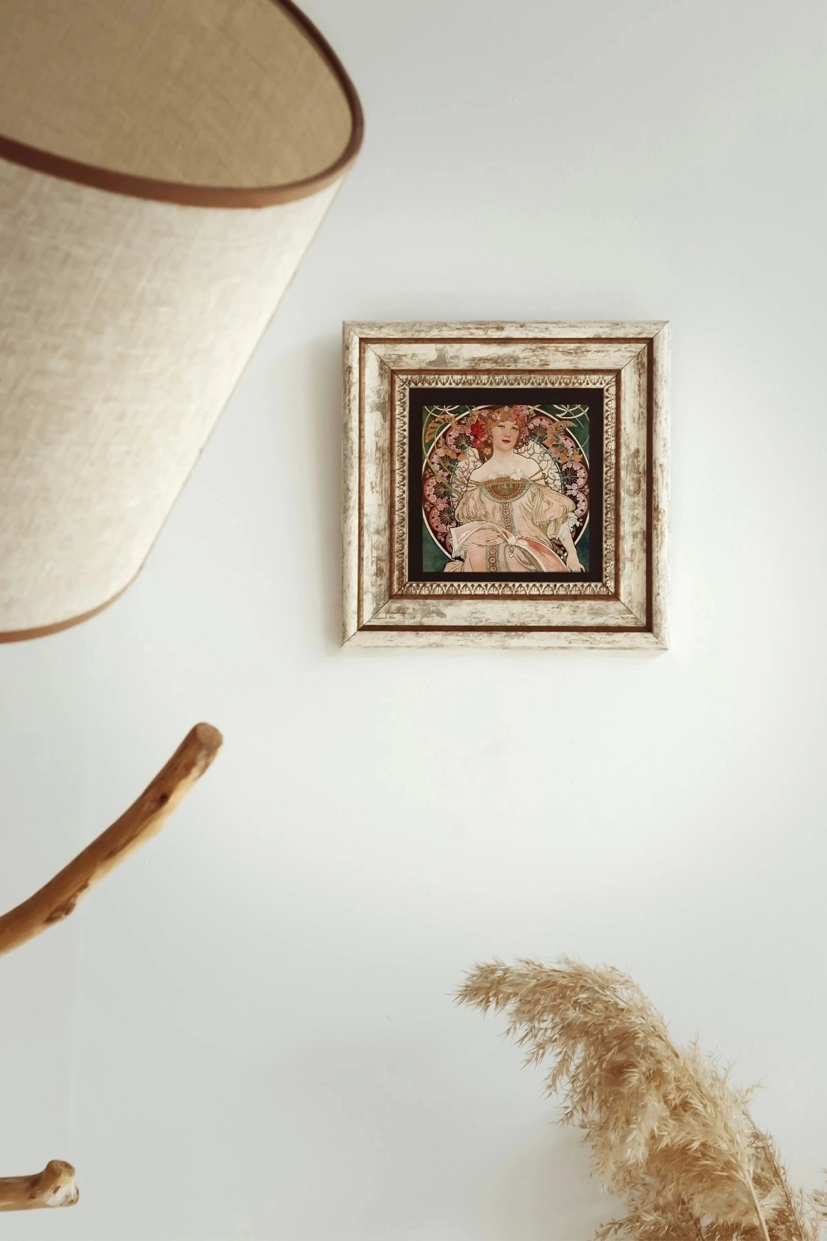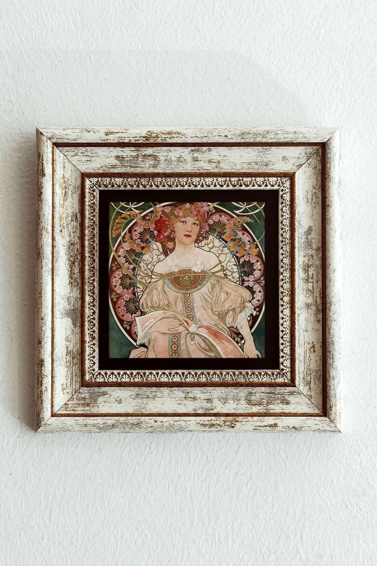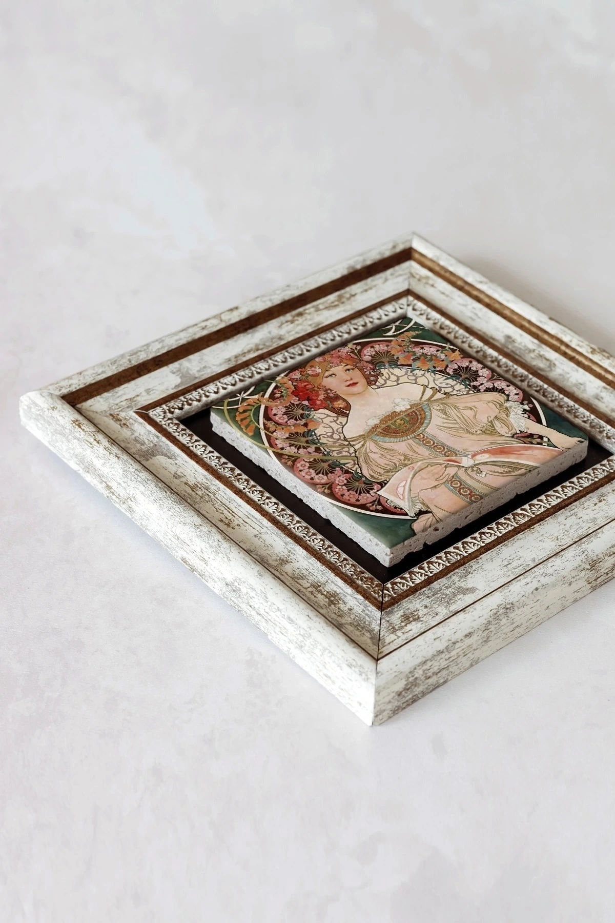 Mucha Çerçeveli Taş Tablo , Çerçeveli Taş Duvar Dekoru-enkcrcvtbl-00163 20 cm
