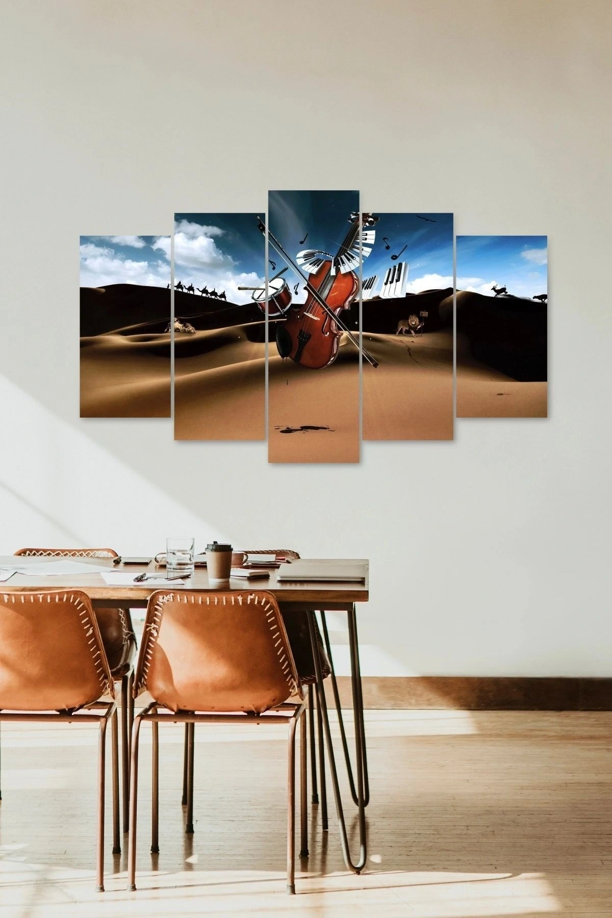 Modern tasarımıyla dikkat çeken Müzik Aletleri Manzara 5 Parçalı MDF Tablo, ev ve ofis dekorasyonunuza şıklık katar; Kaliteli MDF malzemesi sayesinde uzun ömürlü kullanım sunar ve dayanıklılığı ile ön plana çıkar; Her bir parçada detaylı işçilikle işlenmiş ahşap malzeme, estetik görünümün yanı sıra sağlam bir yapı sağlar; Modern stil sahibi olan bu tablo, çağdaş dekorasyon anlayışınıza uyum sağlayarak mekanınıza çağdaş bir hava katar;