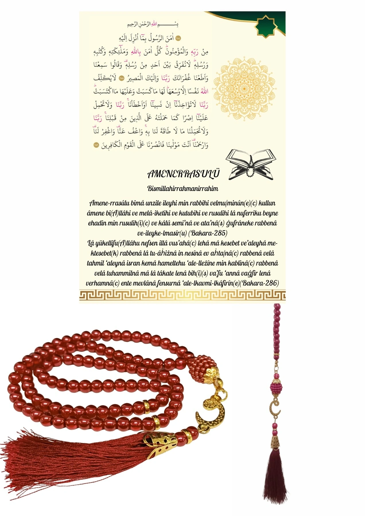 Namaz Tesbihi Vavlı 99'lu Cam İncili Amenerrasulü Dua Kartı İle Fuşya Renk Hediyelik
