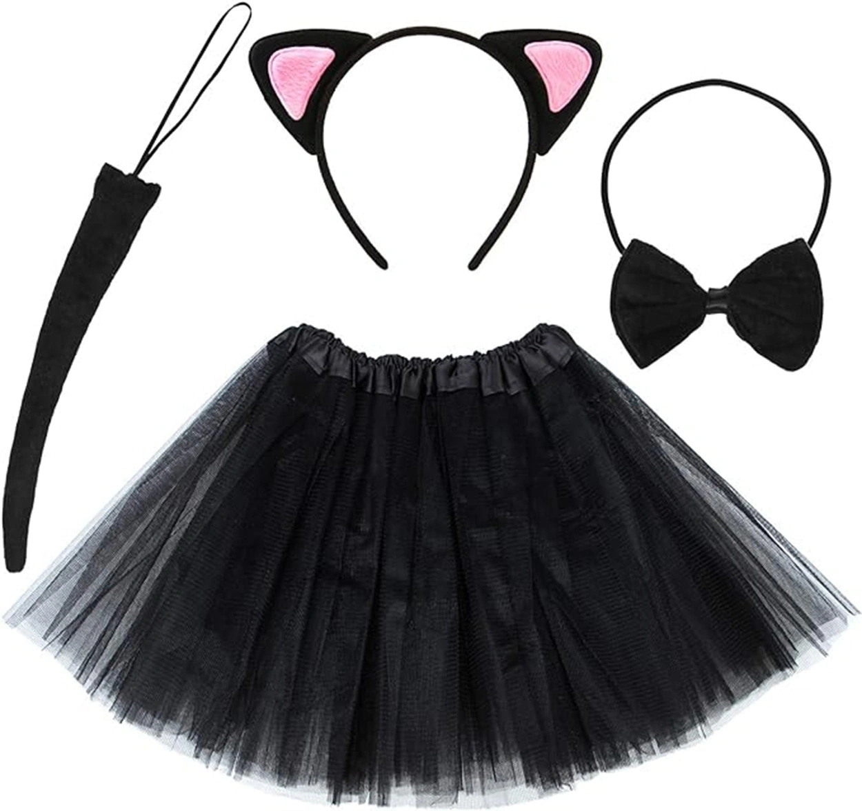Pembe Kedi Kulak Taç, Etek, Kuyruk ve Papyon Seti