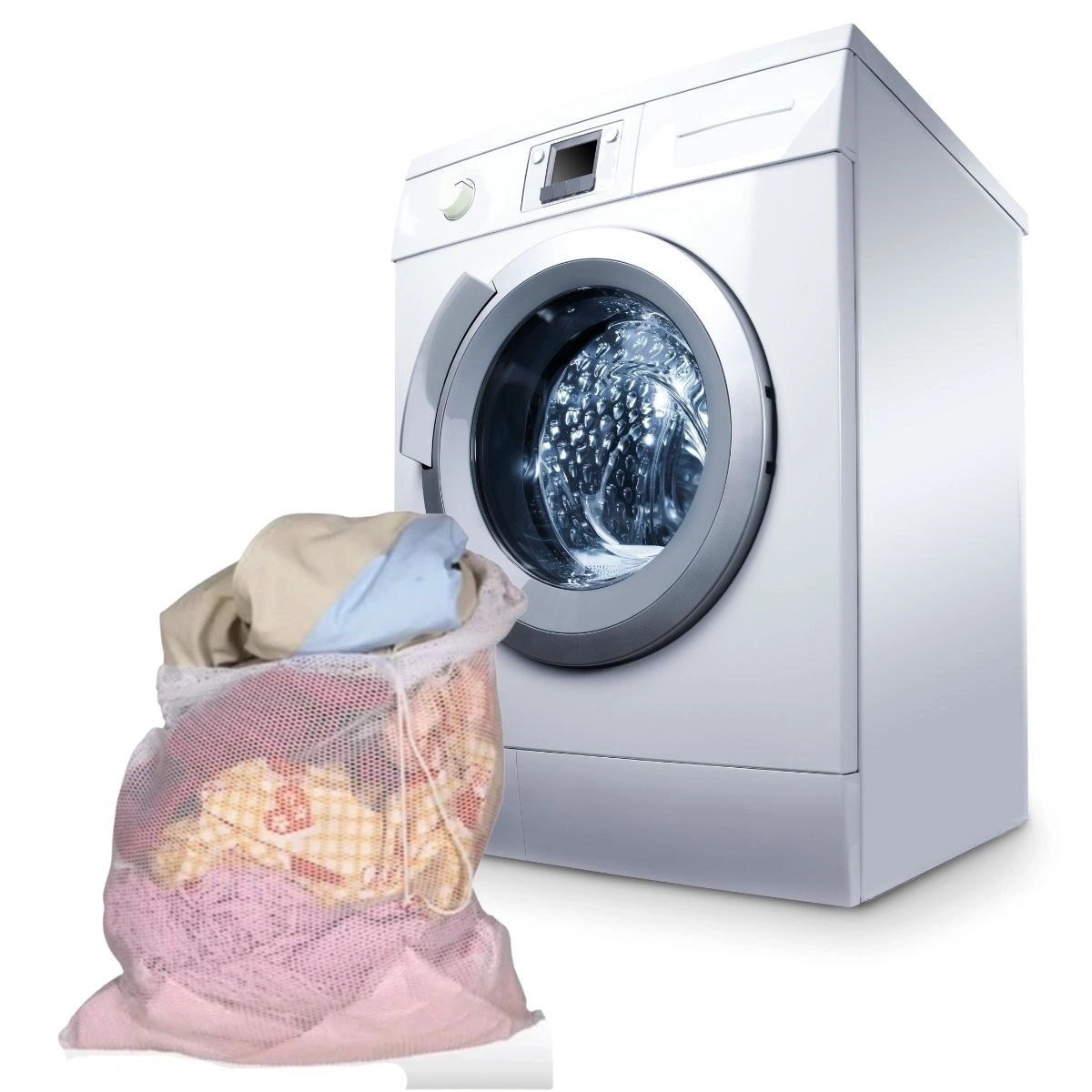 Büyük Boy İpli Pratik Çamaşır Yıkama Filesi ile iç çamaşırı, çorap v.b. küçük giysilerin makine kenarlarına sıkışmadan yıkanmasını sağlar.