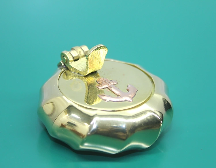 PİRİNÇ ÇAPALI KAPAKLI KÜLLÜKÜrün ÖzellikleriDayanıklı pirinç malzemeden üretilen çapalı kapaklı küllük, 5 cm çapındadır. Denizcilik temalı çapalı tasarımıyla hem şık hem de işlevsel bir obje olarak kullanılabilir. Kapaklı yapısı sayesinde sigara külleri ve izmaritleri güvenli bir şekilde saklar. Pirinç malzemenin sağlam yapısı uzun ömürlü kullanım sunar ve masa veya sehpa üzerinde estetik bir dokunuş sağlar.Paket İçeriği1 adet pirinç çapalı kapaklı küllük. (5 cm)