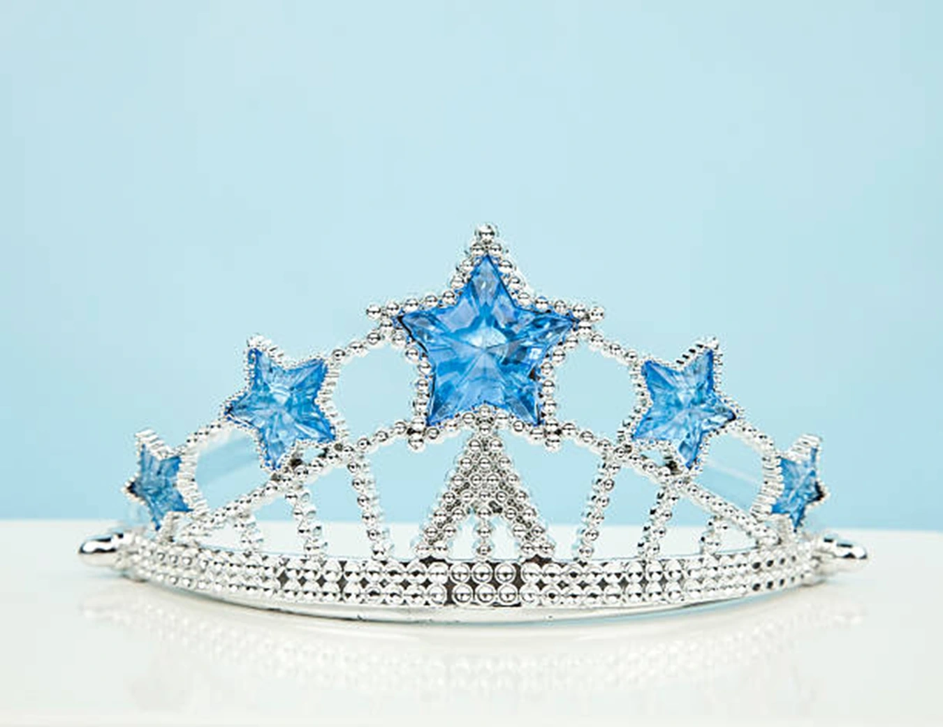 BLUE STAR-STONED PLASTIC QUEEN PRINCESS CROWN - CHILD SIZED