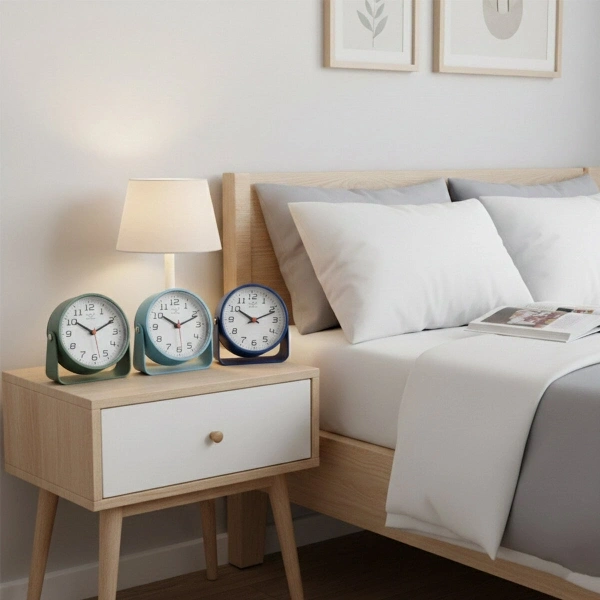 RENKLİ YUVARLAK MASA ÇALAR SAATİÜrün ÖzellikleriRenkli Yuvarlak Masa Çalar Saati, modern minimalist tasarımı ve huzur veren pastel tonlarıyla yaşam alanlarınıza hem şıklık hem de fonksiyonellik katıyor. 9.5 cm çapındaki ideal boyutu ve yuvarlak hatları, her türlü dekorasyon stiline mükemmel uyum sağlar. Yüksek kaliteli renkli plastik kasası ve kavisli ayak yapısı sayesinde masa üstünde dengeli ve estetik bir duruş sergiler. Net okunabilir rakamları ve ince akrep-yelkovan tasarımı, zamanı bir bakışta kolayca takip etmenizi sağlar. Gece kullanımı için tasarlanmış ışıklı kadran özelliği, karanlıkta gözünüzü yormadan saati görmenize yardımcı olur. Güçlü alarm mekanizması ile güne zamanında başlamanızı garanti eden bu modern masa saati, pilli çalışma sistemi sayesinde kablo kısıtlaması olmadan evin her köşesinde kullanılabilir. Mat yüzey kaplaması ve şık renk seçenekleriyle ofis masanızdan yatak odası komodininize kadar her yerde fark yaratır. Hem kendiniz için pratik bir çalar saat hem de sevdikleriniz için modern bir hediyelik obje arıyorsanız bu ürün tam size göre.Ürün Teknik ÖzellikleriÖzellikAçıklamaÜrün AdıRenkli Yuvarlak Masa Çalar SaatiBoyut (Çap)9.5 cmMalzemePremium Mat Plastik KasaFonksiyonÇalar Saat (Alarm) ve Gece IşığıGüç KaynağıPilli (Standart kalem pil ile çalışır)Renk Seçeneği4 Farklı Pastel Renk (Görseldeki renklerden biri karışık gönderilir)TasarımMinimalist Yuvarlak Kasa ve Entegre Destek AyağıPaket İçeriği1 Adet Renkli Yuvarlak Masa Çalar Saati