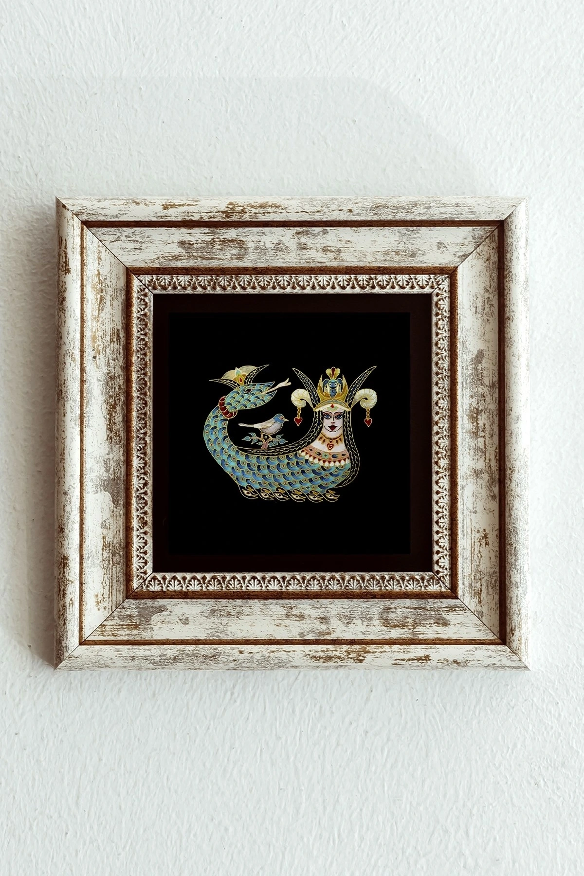 Ürün hakkında:Şahmeran Taş Duvar Dekoru Ölçüleri: 20 cm x 20 cm'dir. ; Kalınlık :2,5 cm'dir. ; Ürünün arka tarafında askı aparatı bulunmaktadır. ; Kullanılan çerçeveler yüksek kaliteli, eskitme görünümlü kompozit malzemeden üretilmiştir. ; Taşların yüzeyindeki baskı teknolojisi özel olup sağlığa hiçbir zararı yoktur. ; Kullanılan malzeme dağdan çıkan gerçek taş oldugu için yüzeyinde belli oranda gözenek bulunması ve renginin krem renginin tonlarını barındırması normaldir kimyasal malzeme teması Yüzey deformasyona maruz kalabilir. ; Nemli bezle silinerek temizlenebilir. ; Isıya, suya ve neme dayanıklıdır. ; Kutu içeriği: Orijinal kutu içerisinde 1 adet çerçeveli taş duvar dekoru. ; 1 adet çerçeveli duvar dekoru ağırlığı: 250 gr çerçeve askısı ile duvara montajı yapılabilir.;