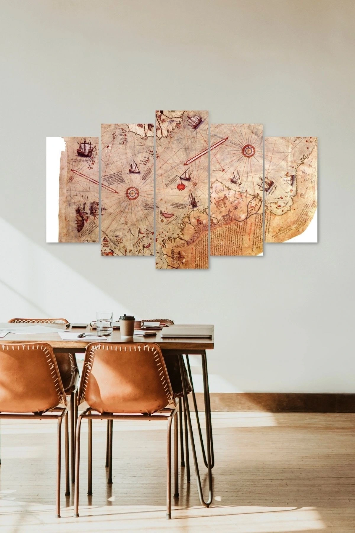 Saklı Harita Manzara 5 Parçalı Mdf Tablo 60 x 100