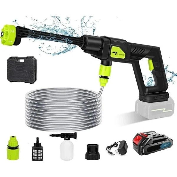 ŞARJLI KABLOSUZ YÜKSEK BASINÇLI OTO YIKAMA MAKİNESİÜrün ÖzellikleriŞarjlı kablosuz yüksek basınçlı oto yıkama makinesi, elektrik prizine ihtiyaç duymadan güçlü temizlik performansı sunan pratik ve taşınabilir bir temizlik çözümüdür. Turbo destekli yüksek basınçlı su çıkışı sayesinde araç yıkama, bahçe sulama, balkon, teras, motosiklet, bisiklet ve zorlu yüzey temizliği gibi birçok alanda etkili sonuçlar elde edilmesine yardımcı olur. Kablosuz yapısı sayesinde kullanım sırasında hareket özgürlüğü sağlar ve dar alanlarda bile rahatça kullanılabilir. Hafif ve ergonomik tasarımı, uzun süreli kullanımlarda bile kol ve bilek yorgunluğunu minimuma indirir. Şarjlı batarya sistemi ile çalışan bu oto yıkama makinesi, uzun pil ömrü sayesinde tek şarjla birden fazla temizlik işlemini rahatlıkla gerçekleştirmenize imkân tanır. Güçlü su basıncı, inatçı kirleri, çamur ve toz kalıntılarını yüzeye zarar vermeden temizlemeye yardımcı olur. Farklı başlık ve aparatlarla birlikte kullanılabilen yapısı, köpüklü yıkama ve hassas temizlik gibi farklı ihtiyaçlara da uyum sağlar. Evde, bahçede, yazlıkta veya dış mekânlarda elektrik bağlantısı olmadan etkili temizlik yapmak isteyenler için ideal bir çözümdür.Paket İçeriği1 adet Şarjlı Kablosuz Yüksek Basınçlı Oto Yıkama Makinesi