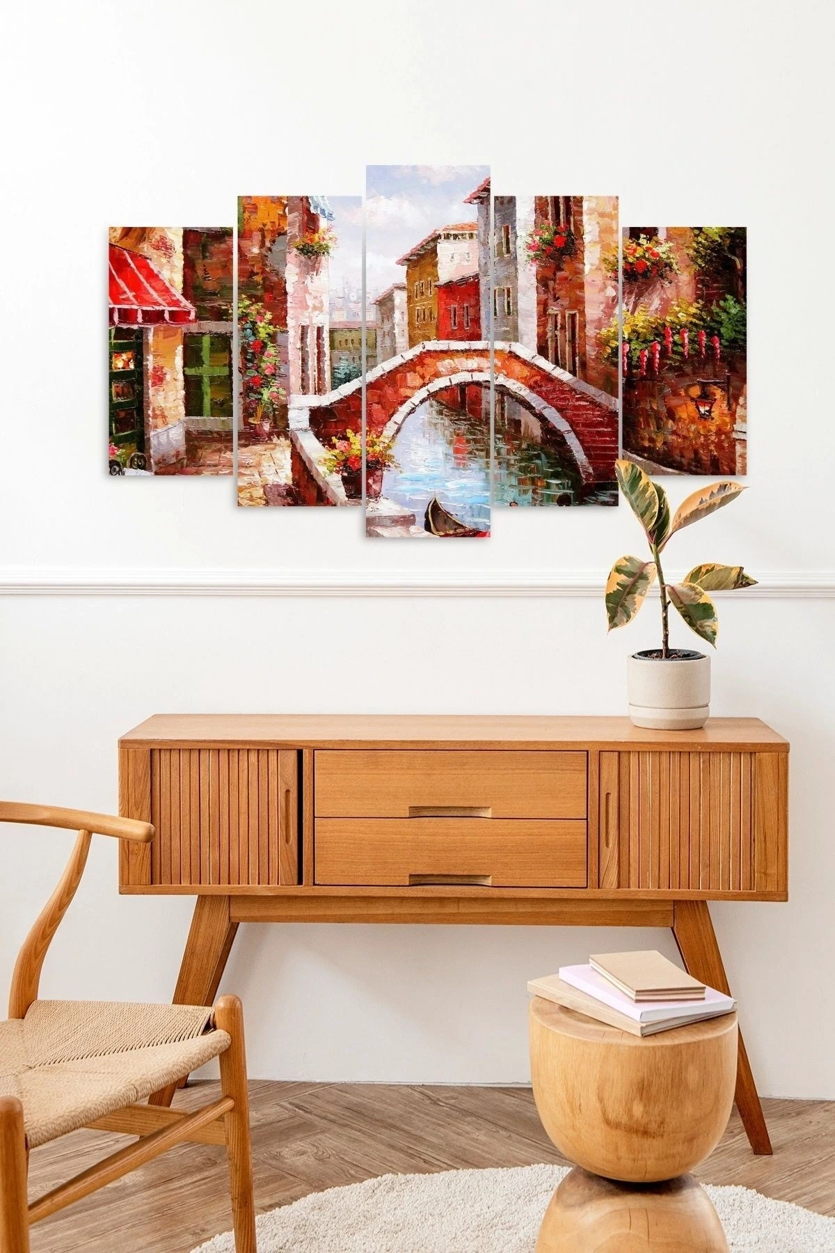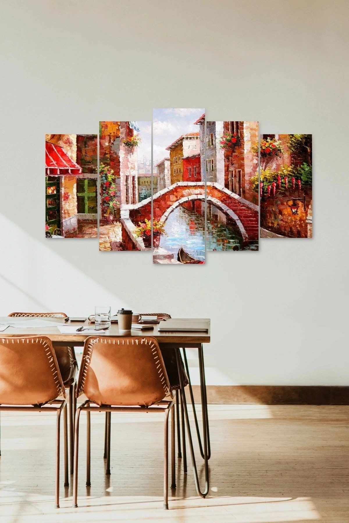 Şehir Manzarası 5 Parçalı Mdf Tablo 60 x 100