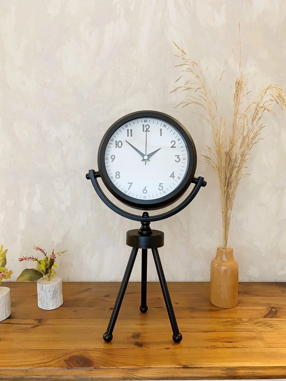 Siyah Metal Mini Tripod Dekoratif Masa Saati 45×26 cm