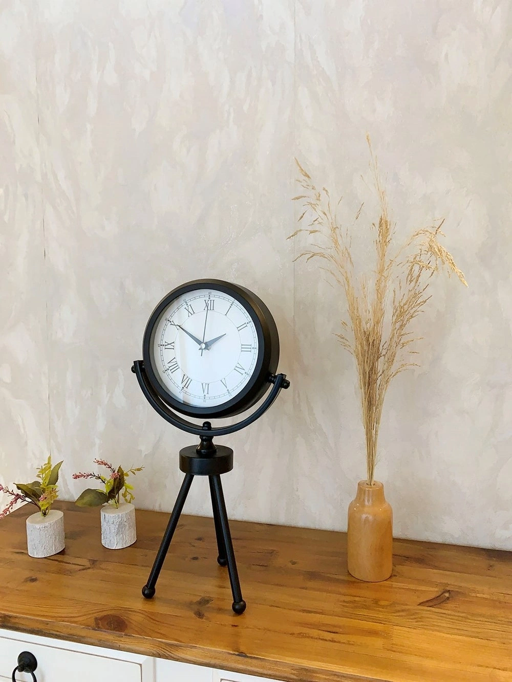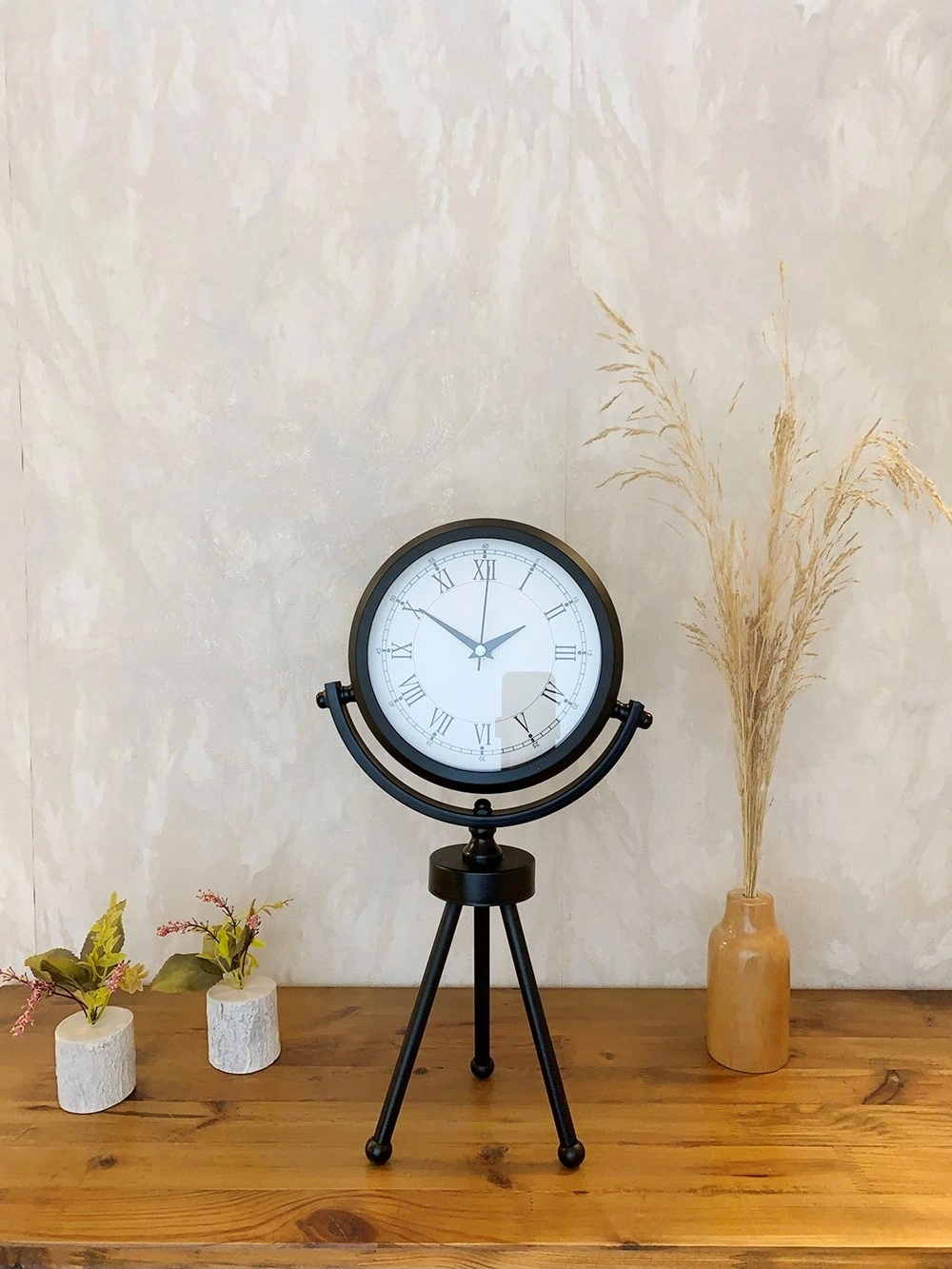Siyah Metal Mini Tripod Retro Masa Saati 45×26 cm